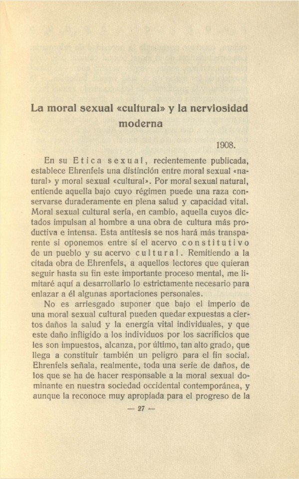Freud, Sigmund | López-Ballesteros y de Torres, Luis | 1908-003/1929.es | 10505 | La moral sexual »cultural« y la nerviosidad moderna | Obras-Madrid 13, 1929 | 27–52 | Fertig ✔ | Fertig ✔ | Ganz fertig / zutreffend ✔ | Fehlt ✖ | Fehlt ✖ | Ganz fertig / zutreffend ✔ | ✔ | EB | ✔ |