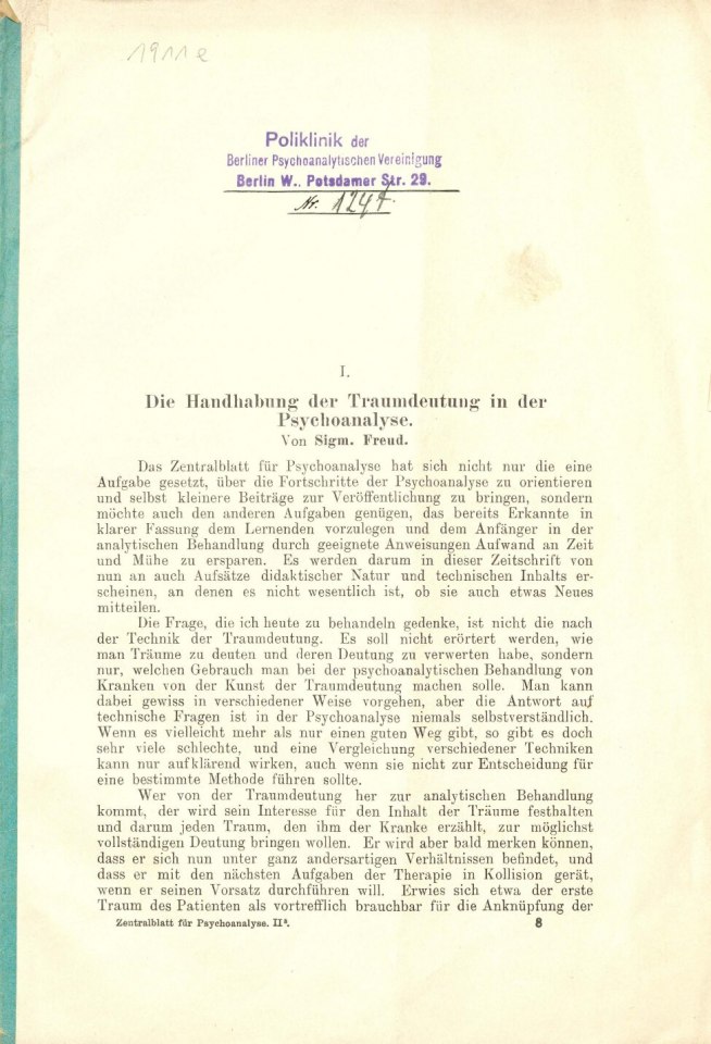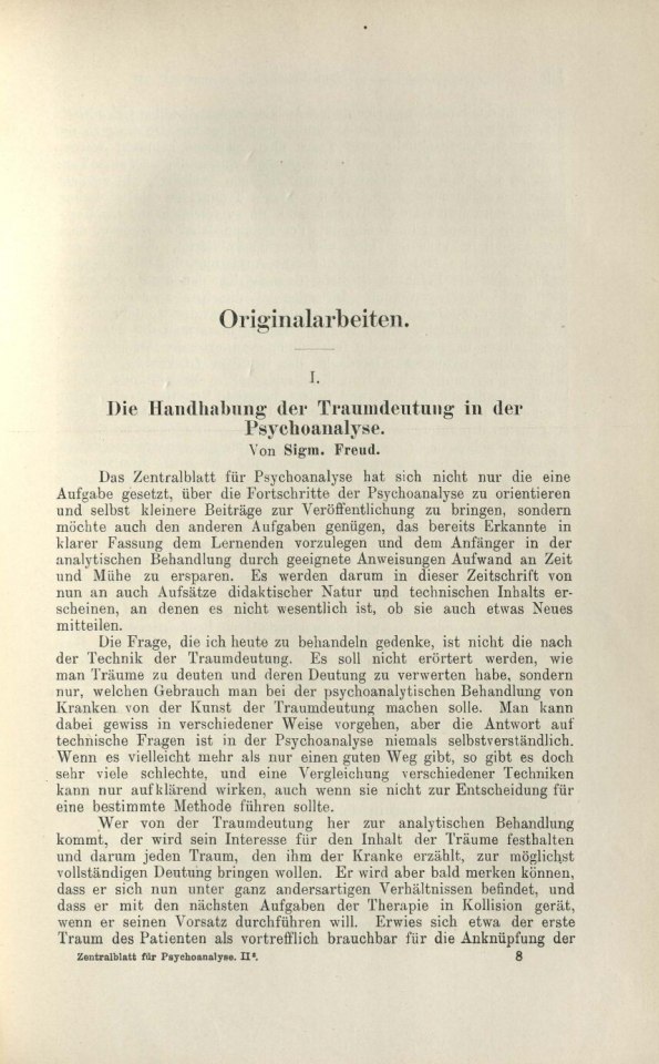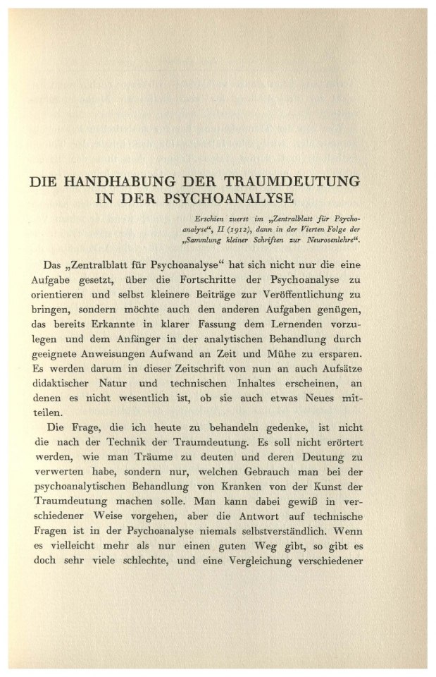 Freud, Sigmund | 1911-004/1911.2 | Die Handhabung der Traumdeutung in der Psychoanalyse | Separatum Zb 2, 1911, 3 |