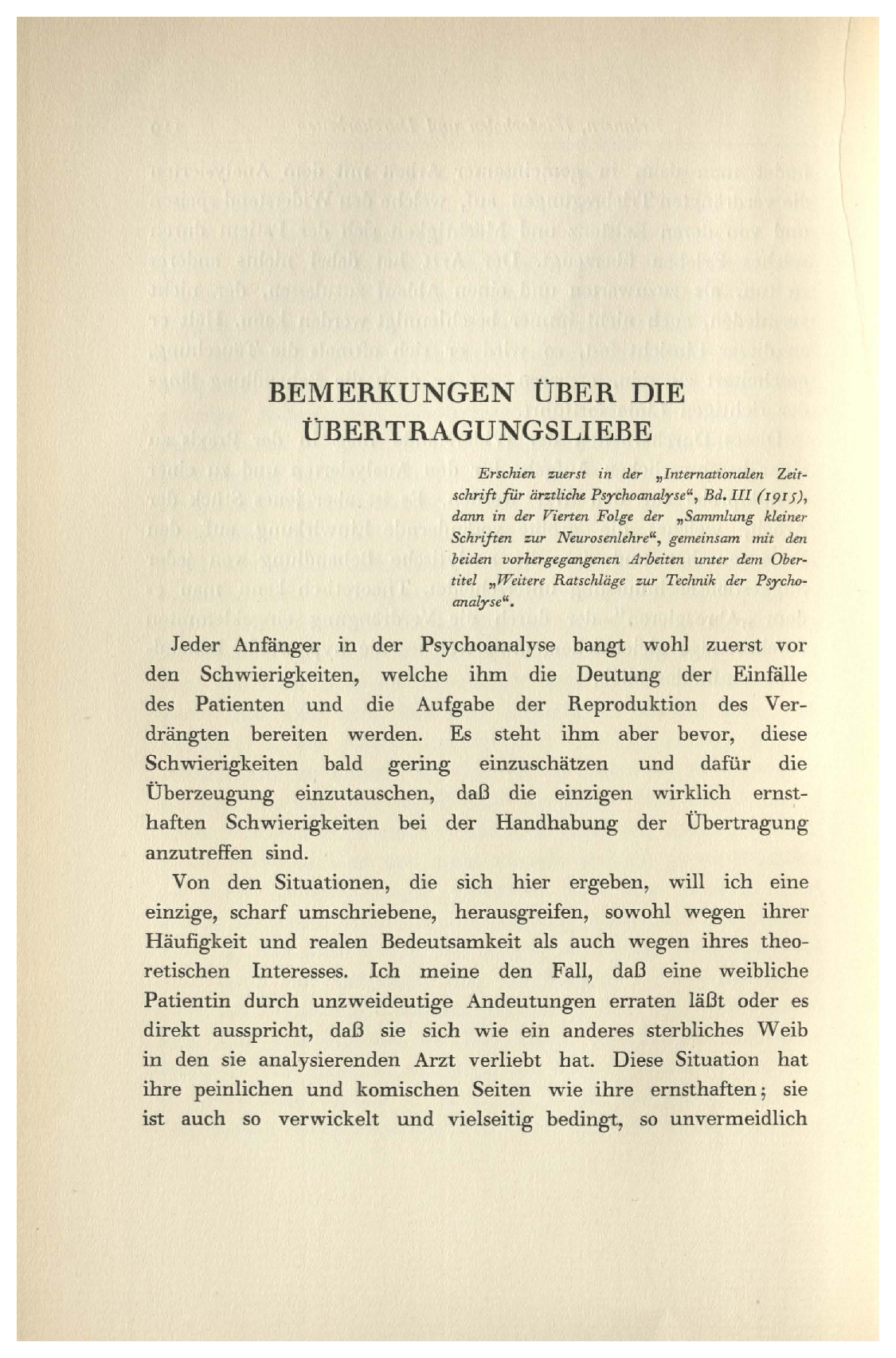 Bemerkungen über die Übertragungsliebe 133