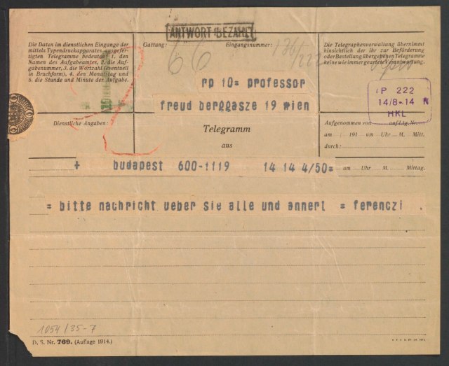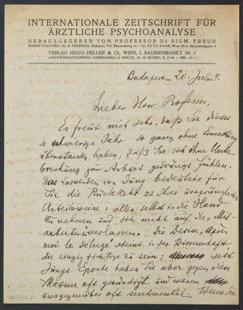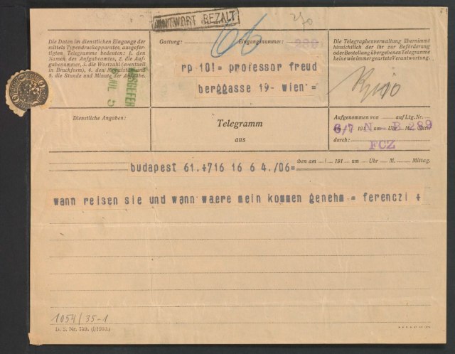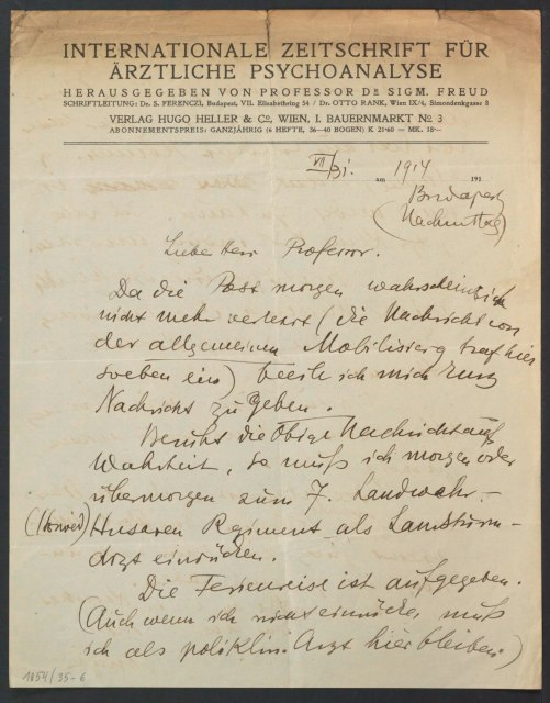 [1 Ansichtskarte F – Ferenczi, Sándor (13.9.1913) S. 53, 55f; |