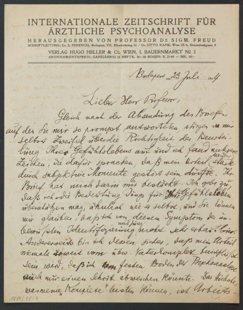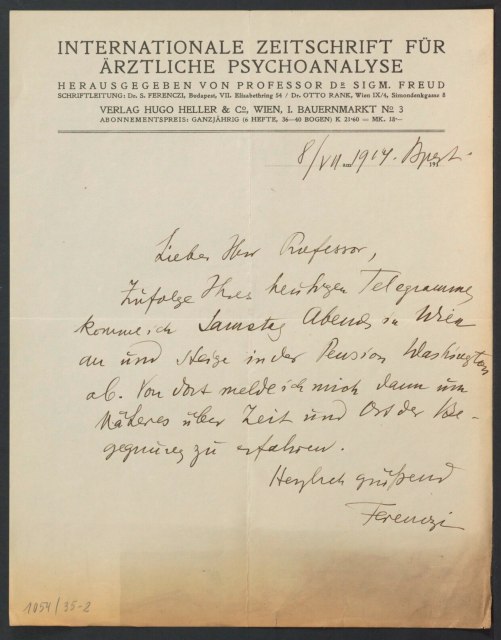 [2 Briefe F – Ferenczi, Sándor (24.5.1913, 9.4.1919) S. 234, 73; |