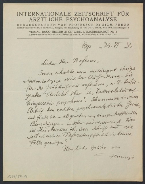 [1 Brief F – Ferenczi, Sandor und Jones, Ernest (26.6.1913) S. 231f] |