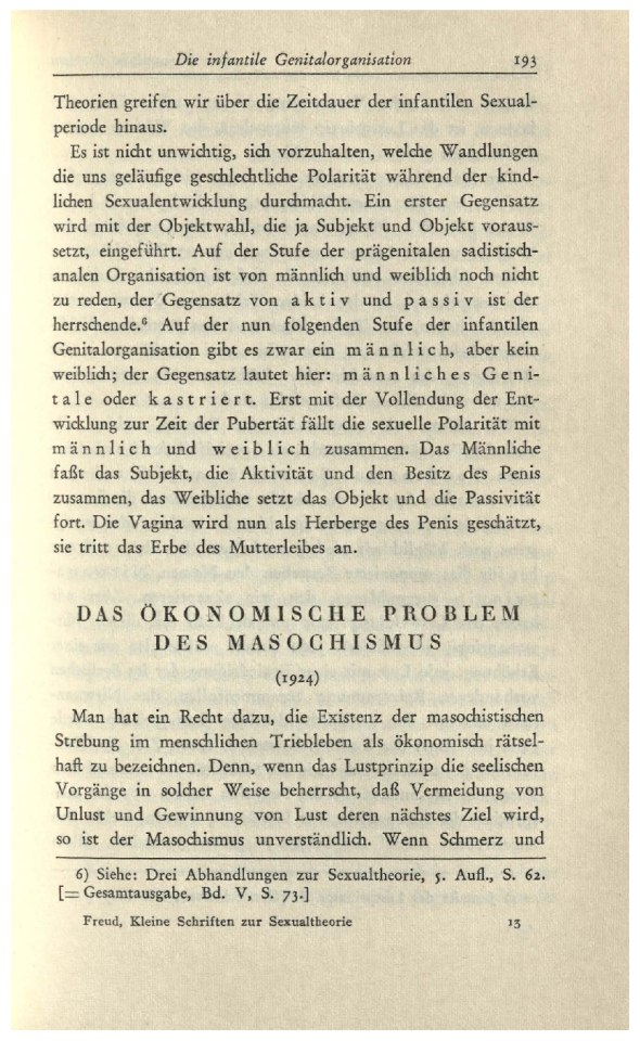 Freud, Sigmund | 1924-002/1931 | 10555 | Das ökonomische Problem des Masochismus | Kl. 8° [4] | 193–207 | Fertig ✔ | Fertig ✔ | Ganz fertig / zutreffend ✔ | Fehlt ✖ | Fehlt ✖ | Ganz fertig / zutreffend ✔ | ✔ | EB | ✔ |