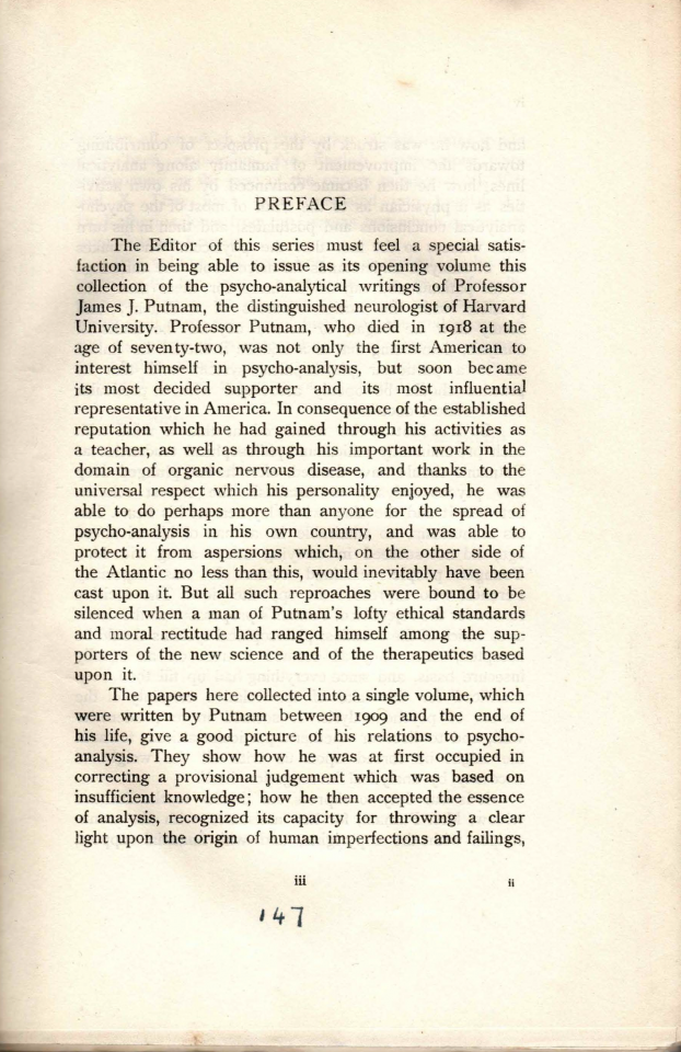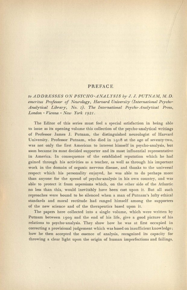 Preface [zu: Putnam, James J. ›Addresses on Psycho-Analysis‹]
