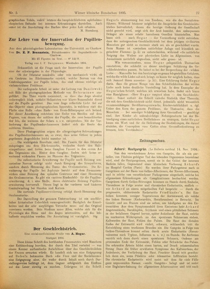 Rezension von: Hegar, Alfred ›Der Geschlechtstrieb. Eine social-medicinische Studie‹