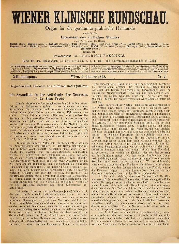 Freud, Sigmund | 1898-001/1898.4 | 1898a | 1898-01 | 10598 | Die Sexualität in der Aetiologie der Neurosen (Schluss.) | Wiener Klinische Rundschau, 12, 1898, 7 | 103–105 | Fertig ✔ | Fertig ✔ | Ganz fertig / zutreffend ✔ | Fehlt ✖ | Fehlt ✖ | Ganz fertig / zutreffend ✔ | ✔ | EB | ✔ | |