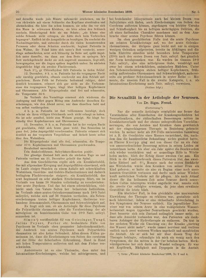 Freud, Sigmund | 1898-001/1898.3 | 1898a | 1898-01 | 10598 | Die Sexualität in der Aetiologie der Neurosen ([II.] Fortsetzung) | Wiener Klinische Rundschau, 12, 1898, 5 | 70–72 | Fertig ✔ | Fertig ✔ | Ganz fertig / zutreffend ✔ | Fehlt ✖ | Fehlt ✖ | Ganz fertig / zutreffend ✔ | ✔ | EB | ✔ | |