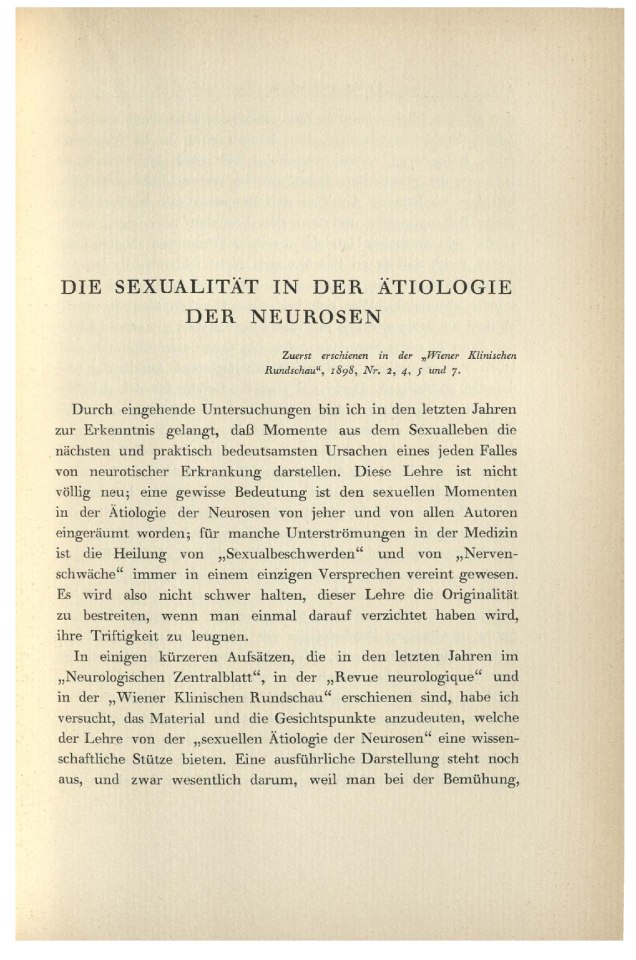 Freud, Sigmund | 1898-001/1920 | 10598 | Die Sexualität in der Ätiologie der Neurosen | SKSN 1 (3. Auflage) | 178–200 | Fertig ✔ | Fertig ✔ | Ganz fertig / zutreffend ✔ | Fehlt ✖ | Fehlt ✖ | Ganz fertig / zutreffend ✔ | ✔ | EB | ✔ | |||