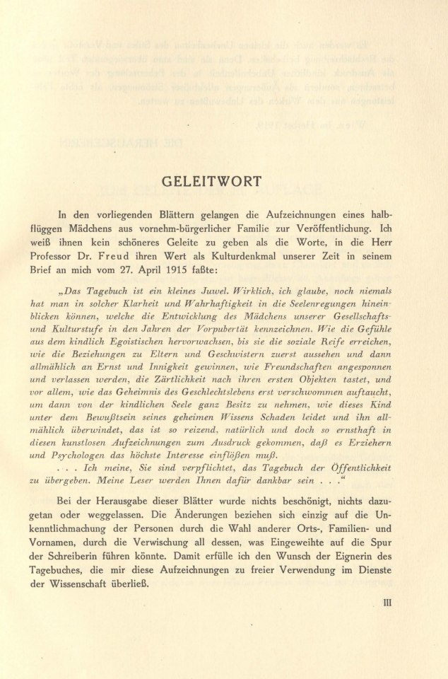 Hug-Hellmuth, Hermine 1919-071/1919 1919i 10416 Geleitwort Tagebuch iii–iv Fertig Fertig Ganz fertig / zutreffend Fehlt Fehlt Ganz fertig / zutreffend EB