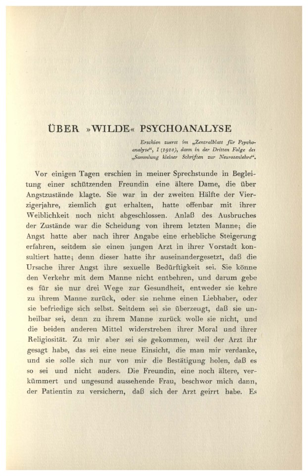 Freud, Sigmund | 1910-008/1924 | 10651 | Über „wilde“ Psychoanalyse | Technik & Metapsychologie | 37–44 | Fertig ✔ | Fertig ✔ | Ganz fertig / zutreffend ✔ | Fehlt ✖ | Fehlt ✖ | Ganz fertig / zutreffend ✔ | ✔ | EB | ✔ | |||