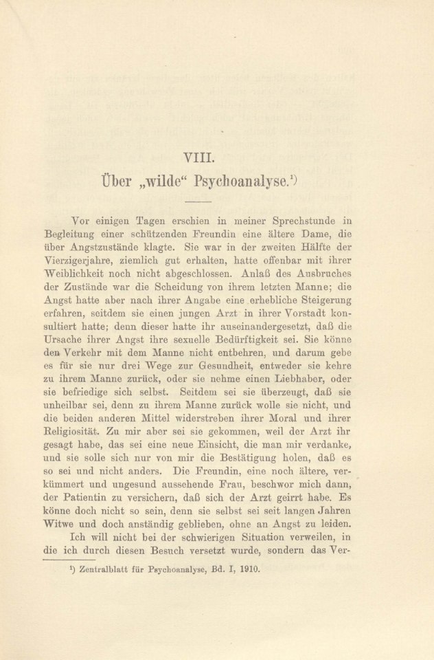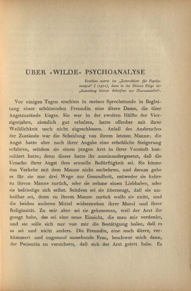 Freud, Sigmund | 1910-008/1913 | 10651 | Über „wilde“ Psychoanalyse | SKSN 3 | 299–305 | Fertig ✔ | Fertig ✔ | Ganz fertig / zutreffend ✔ | Fehlt ✖ | Fehlt ✖ | Ganz fertig / zutreffend ✔ | ✔ | EB | ✔ | |||