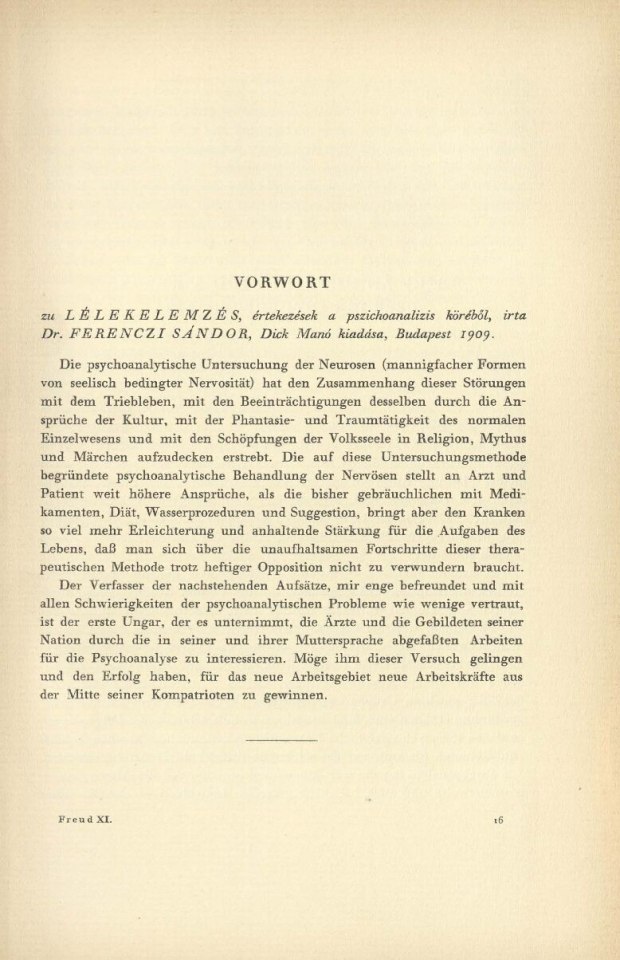 Vorwort [zu: Ferenczi, Sándor ›Lélekelemzés, értekezés a pszichoanalízis köréből‹]