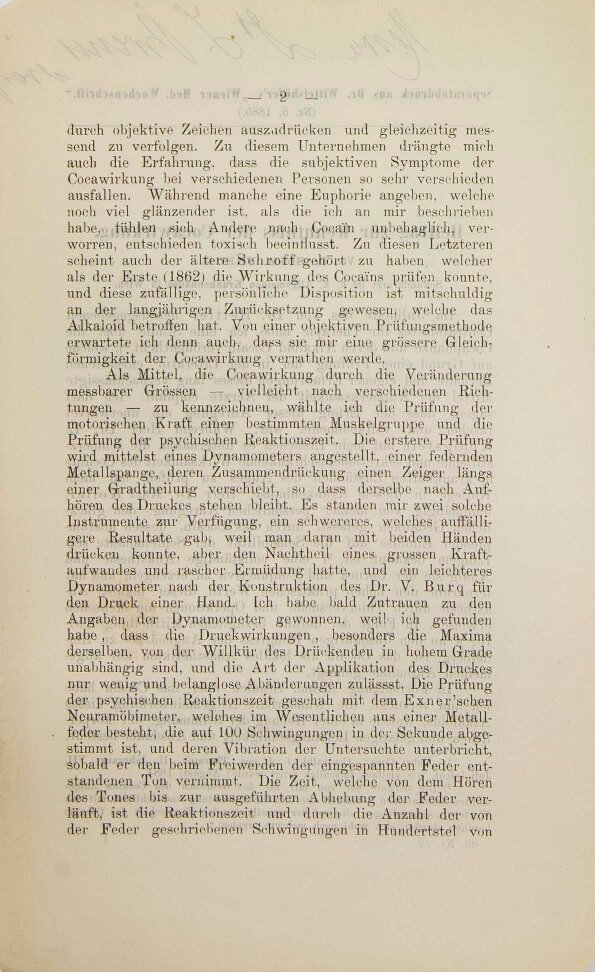 als der Euste (1862) die Wirkung des Cocaïns priüfen konnte.