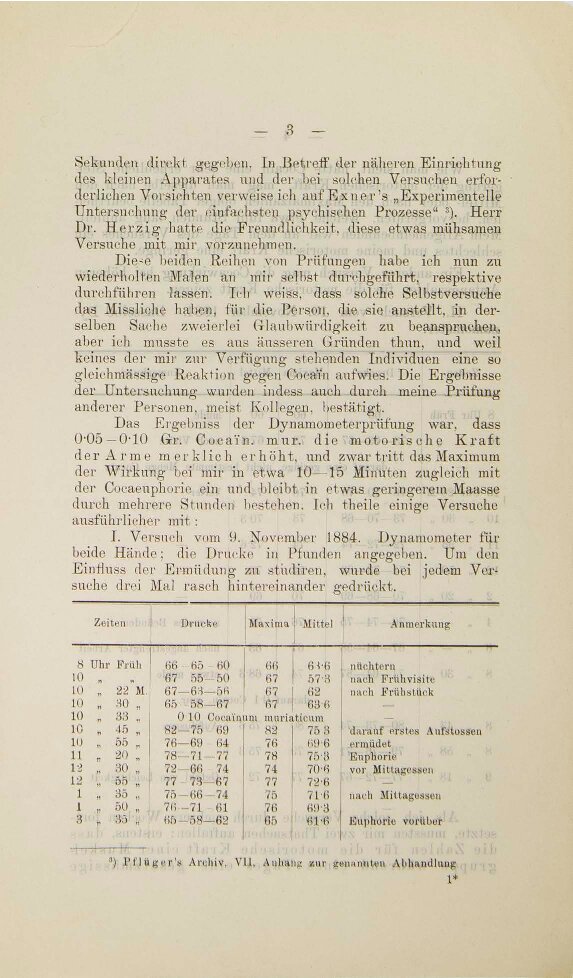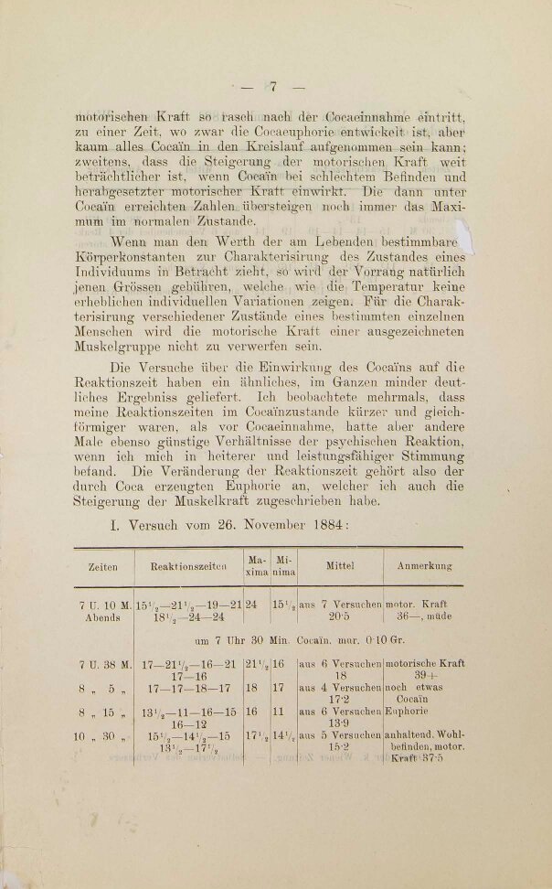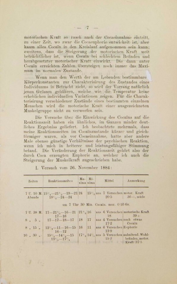 meine Reaktionszeiten im Cocaïnzustande kiürzer und gieich-