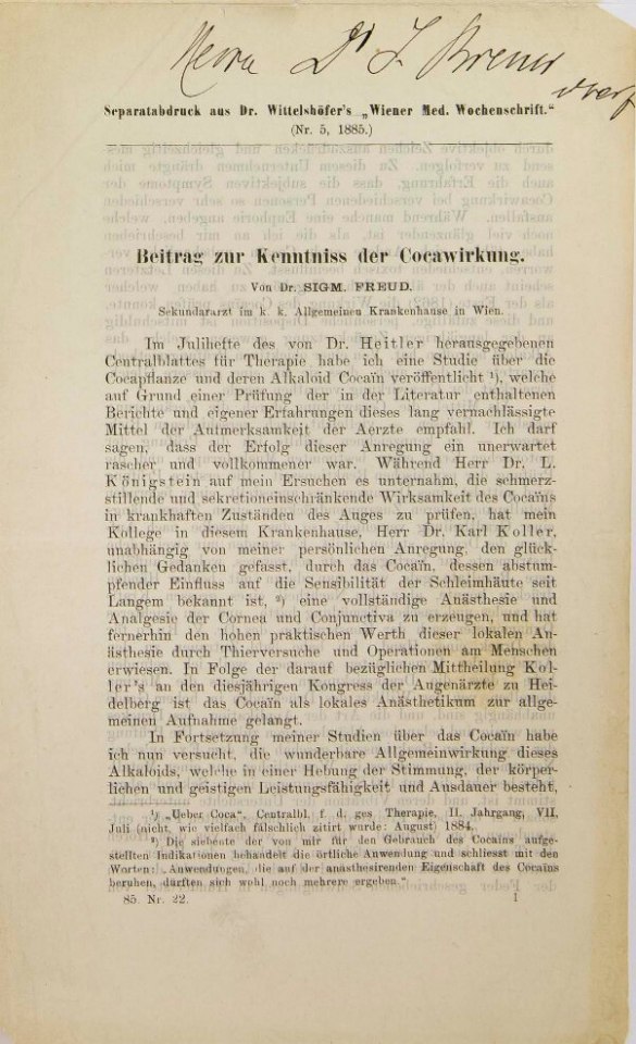 Cocaptlanze und deren Alkaloid Cocaïn verötfentlicht ), welehe