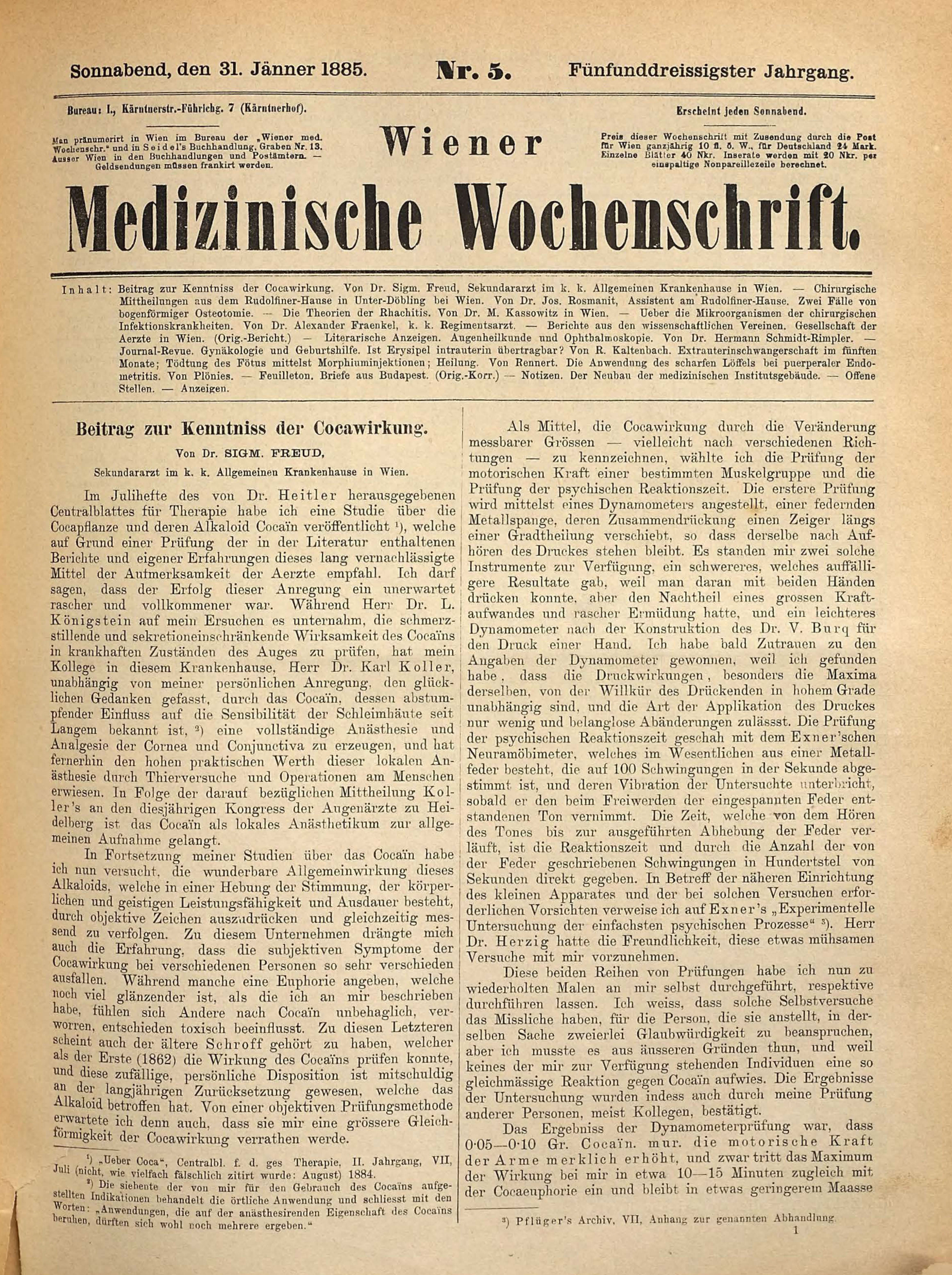 etwas geringerem Maasse1 „Ueber Coca“, Centralbl. f. d. ges. Therapie. II. Jahrgang, VII, Juli (nicht, wie vielfach