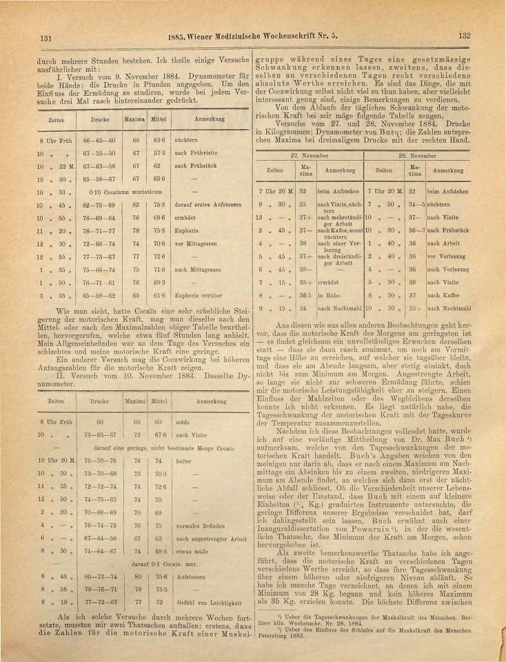 3 „ 35 „ 65–58–62 65 61,6 Euphorie vorüberWie man sieht, hatte Cocaïn eine sehr erhebliche Steigerung der motorischen