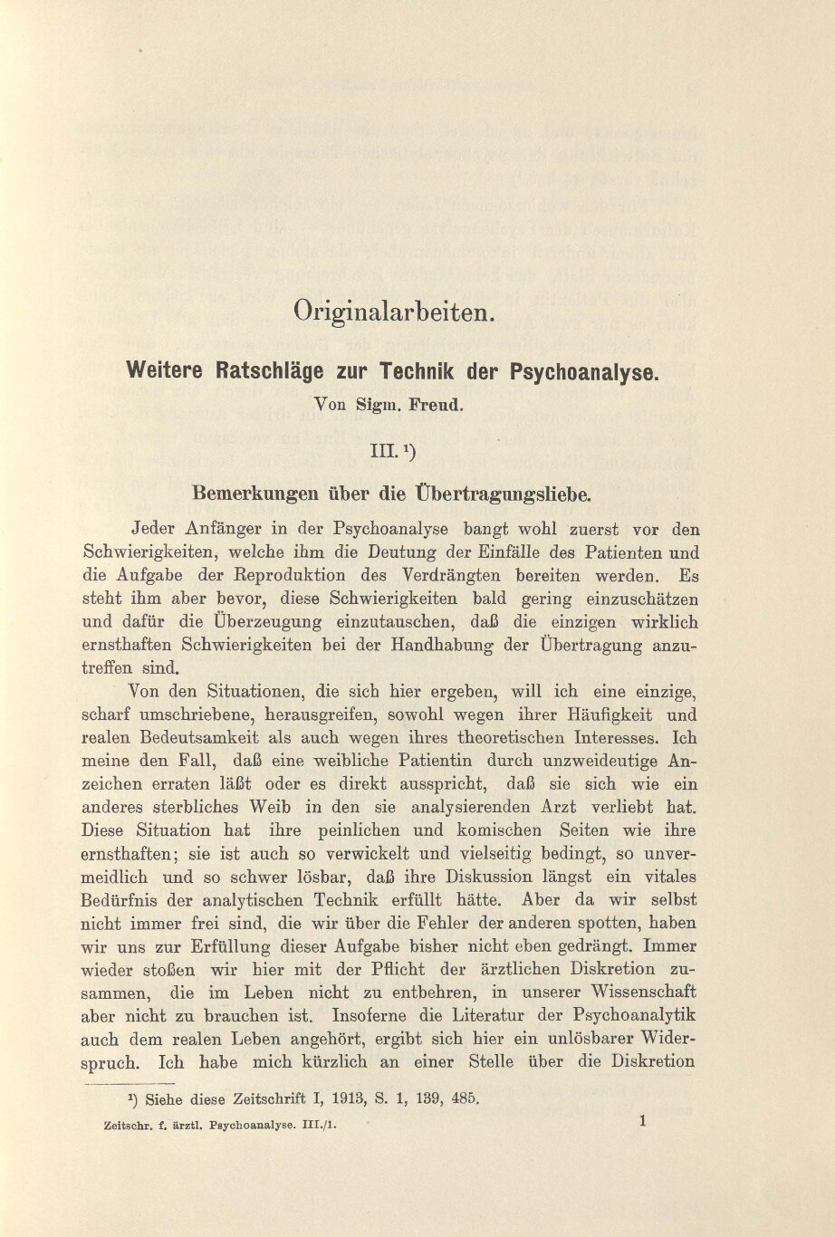 Von Sigm. Freud.in. ‚)