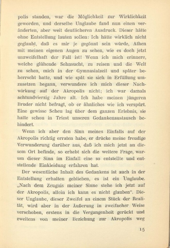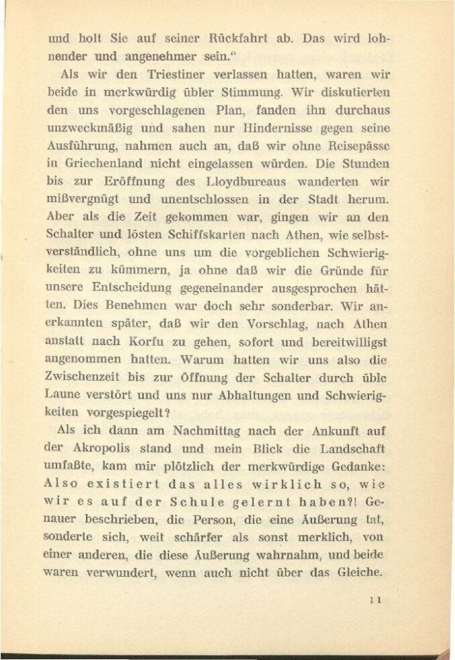 die Erinnerung an das Erlebnis auf der Akrnpolis so