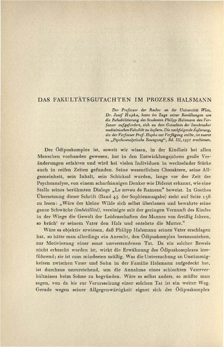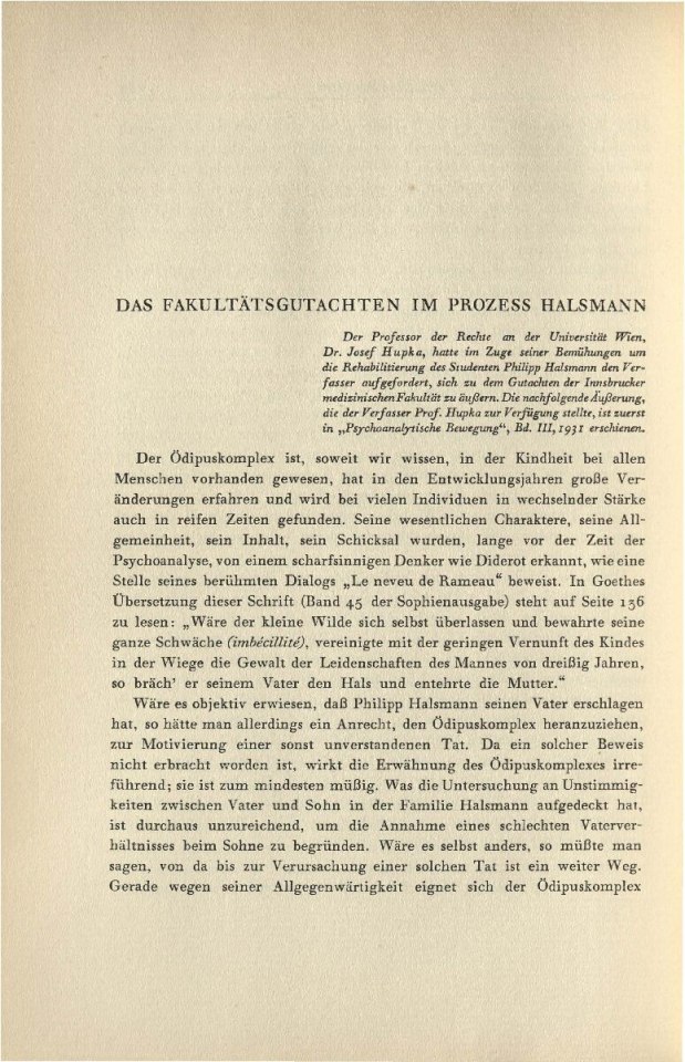 in „Psychoanalytische Bewegung“, Bd. III, 1931 erschienen.Der Ödipuskomplex ist, soweit wir wissen, in der Kindheit bei allen