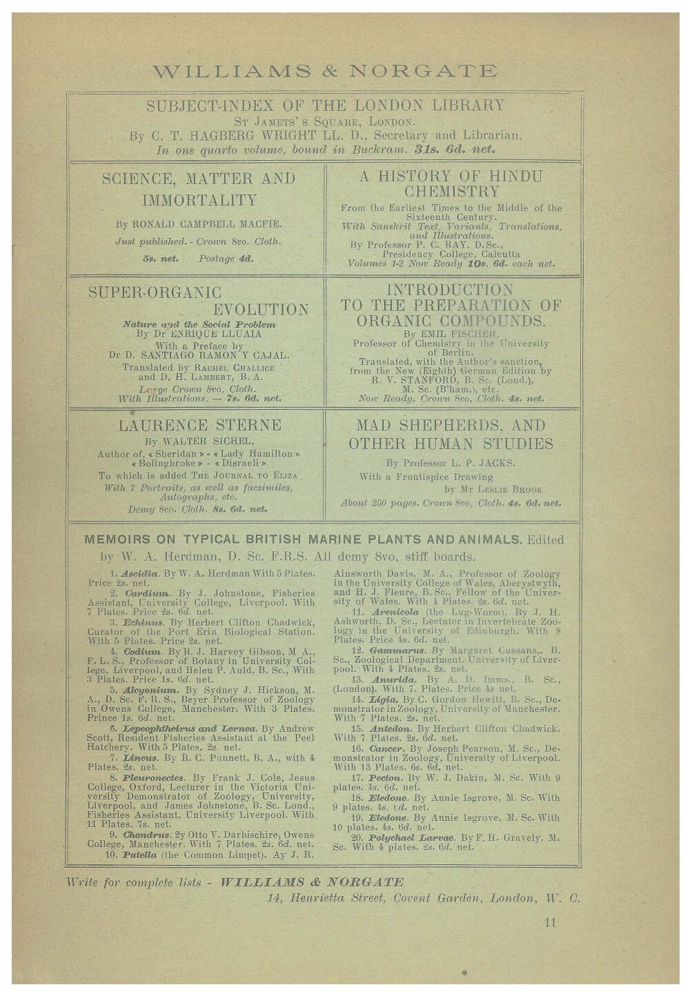 (M. Gortani) FH. DANNEMANN. Die Naturwissenschaften in der Entwicklung und in ihrem Zusammenhang (A. Reyi. A. Phen. Die Ernährung der Wasserfiere und der Stoffhaushalt der (en aur-J. Loen. E ficondation chimique - F. CzHER, Chemical phenomena in Tie-1. A. Tausos, Introduction to ackee-11. E. CAMPUS, The doctrim of evolution (E. S. Russell)) H. Prix. Ze problemer physiologie di mil-A. CREazzo, Studio a to urte apparente e la té ren (0. Pollmanti). A. DE CANDOLLE, Zur Geschichte der Wissenschaften and der gelehrten seit ze Jahrhamlerten (W. Mecklenburg). L. GH. Seut, Influences of waphicencieme ment, on the basis of Hatzel's syutem of anthropogeigraphy-Haupos. The mean doring of peoples (lt. Mannice. 1. A. DESERY and F. Want, textbook of sociology A. W. SMALL The meaning of social science (L. Limentani) G. PALLARI. Itanovo contrattualiano nella filosofia sociale e giuridico (P. Savorgnan