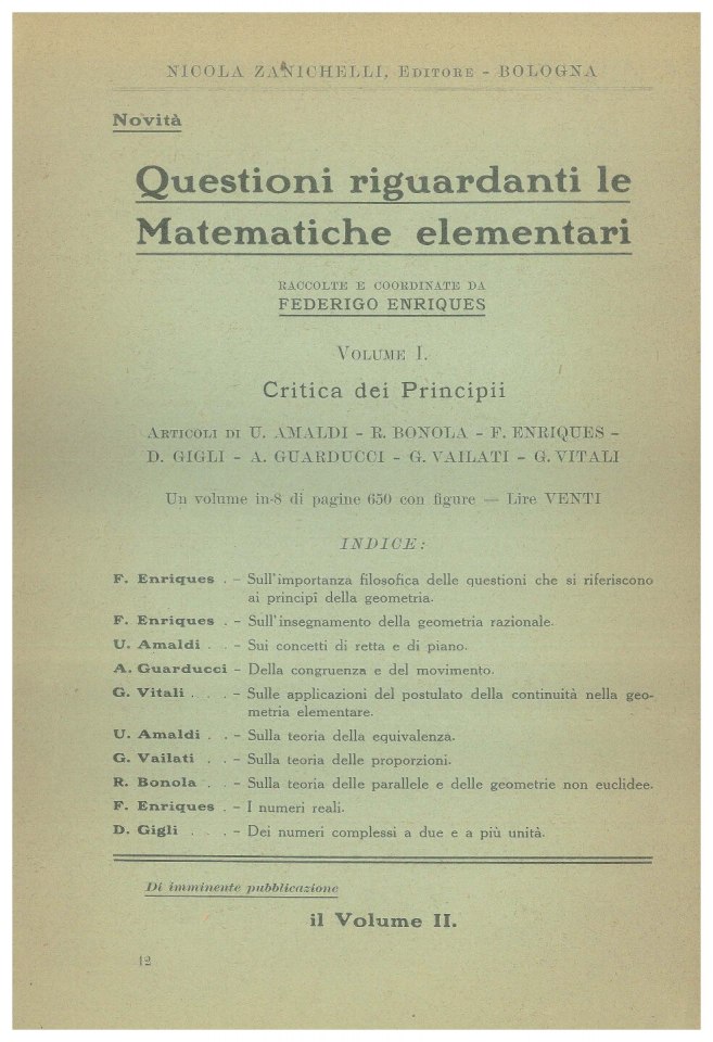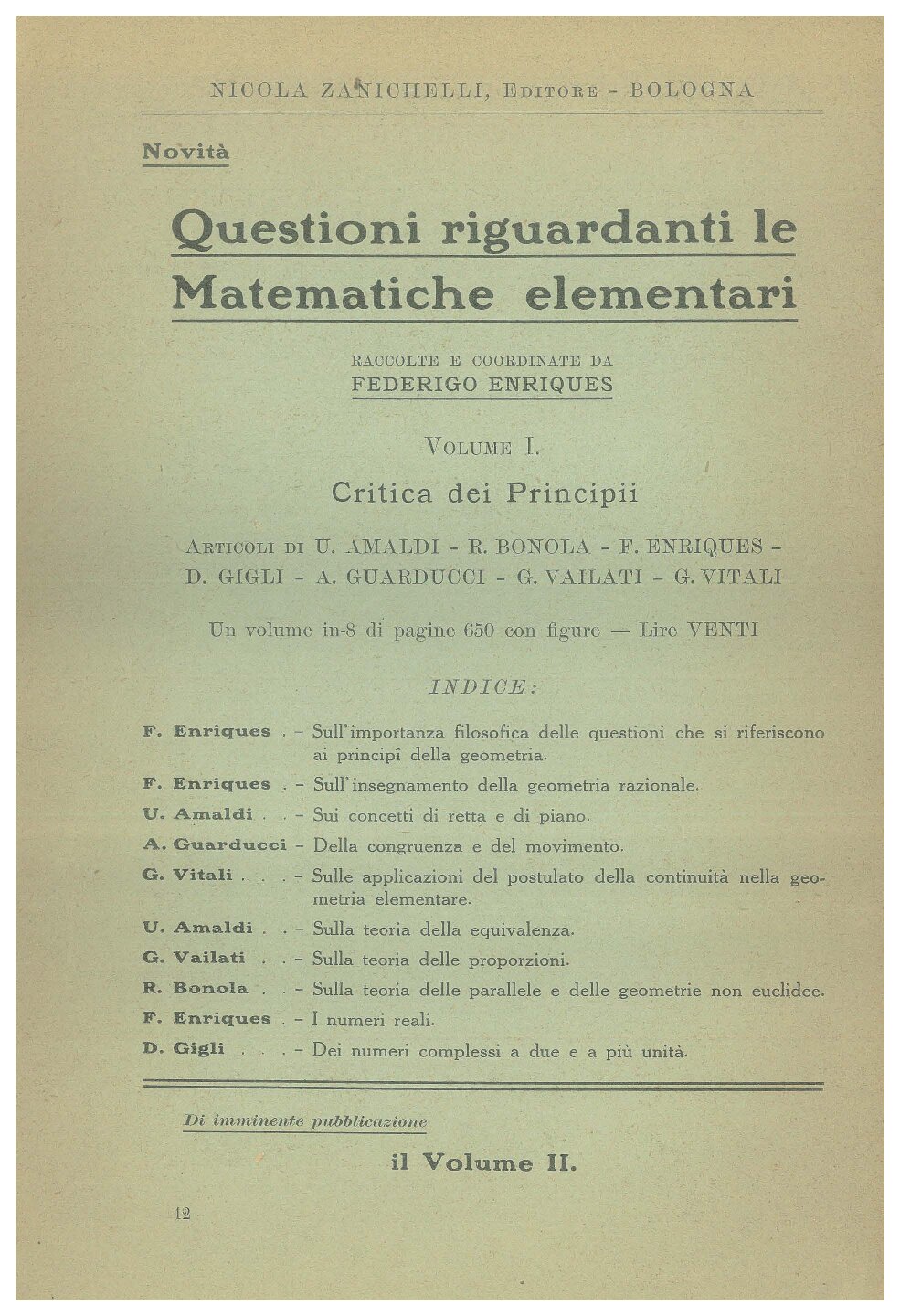 Castelnuovo, G. (Roma): Il valore didattico della matematione della fisica (La valeur didactique des mathématiques et de la physique)