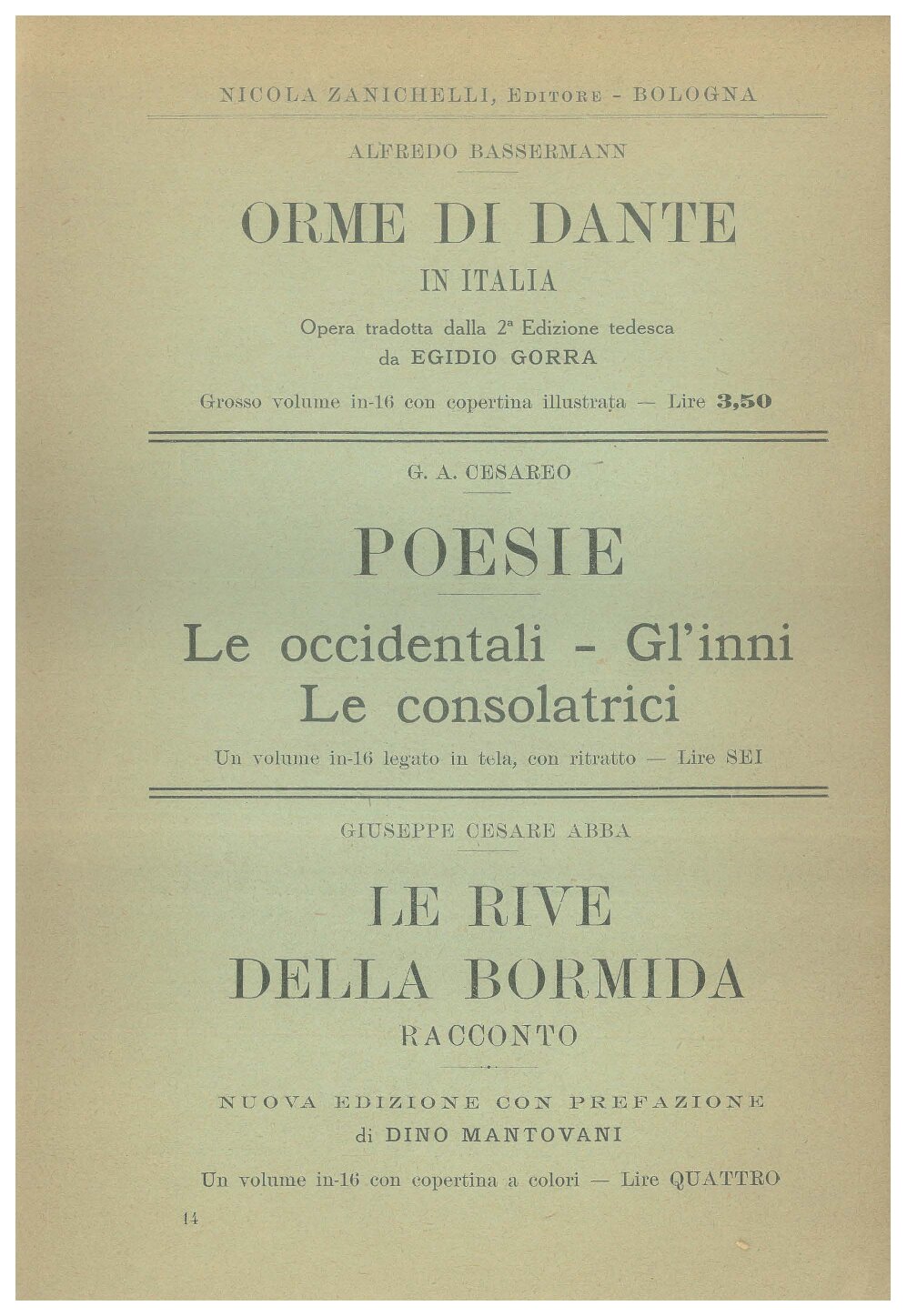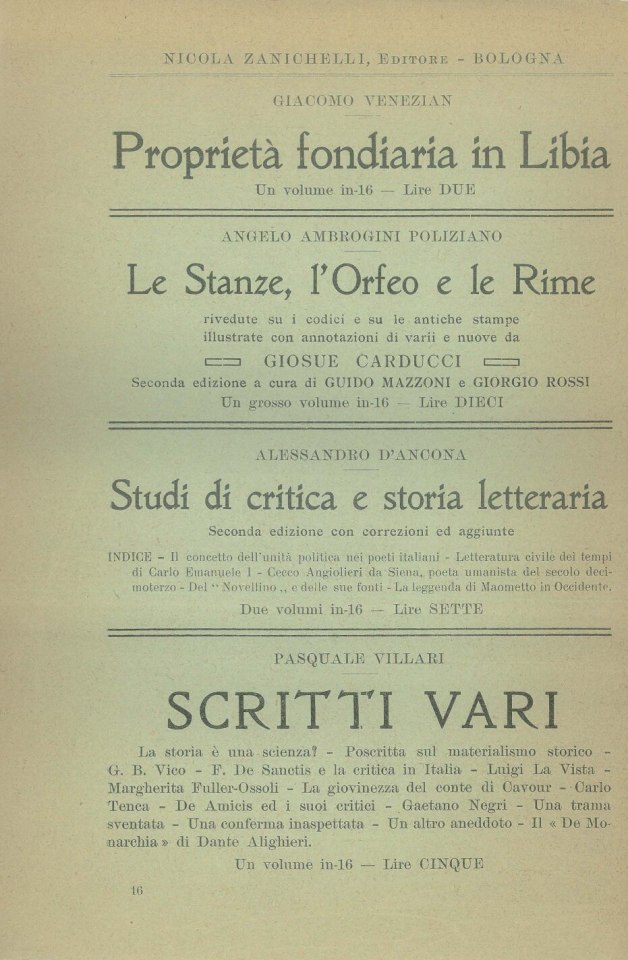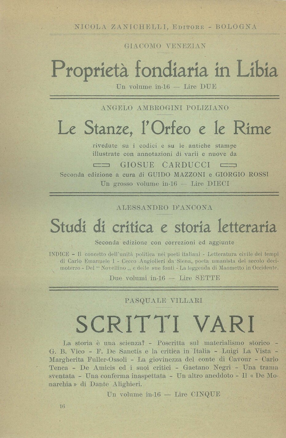 rivedute su i codici e su le antiche stampe illustrate con annotazioni di varii e nuove da GIOSUE CARDUCCI Seconda edizione a cura di GUIDO MAZZONI e GIORGIO ROSSI Un grosso volume in-16- Lire DIECI