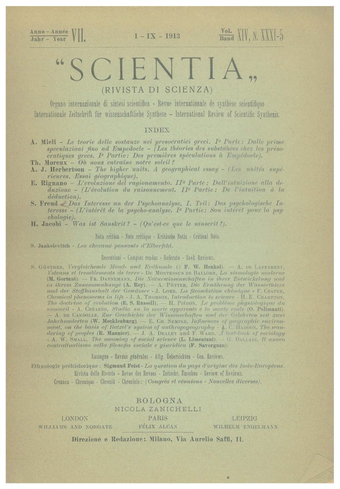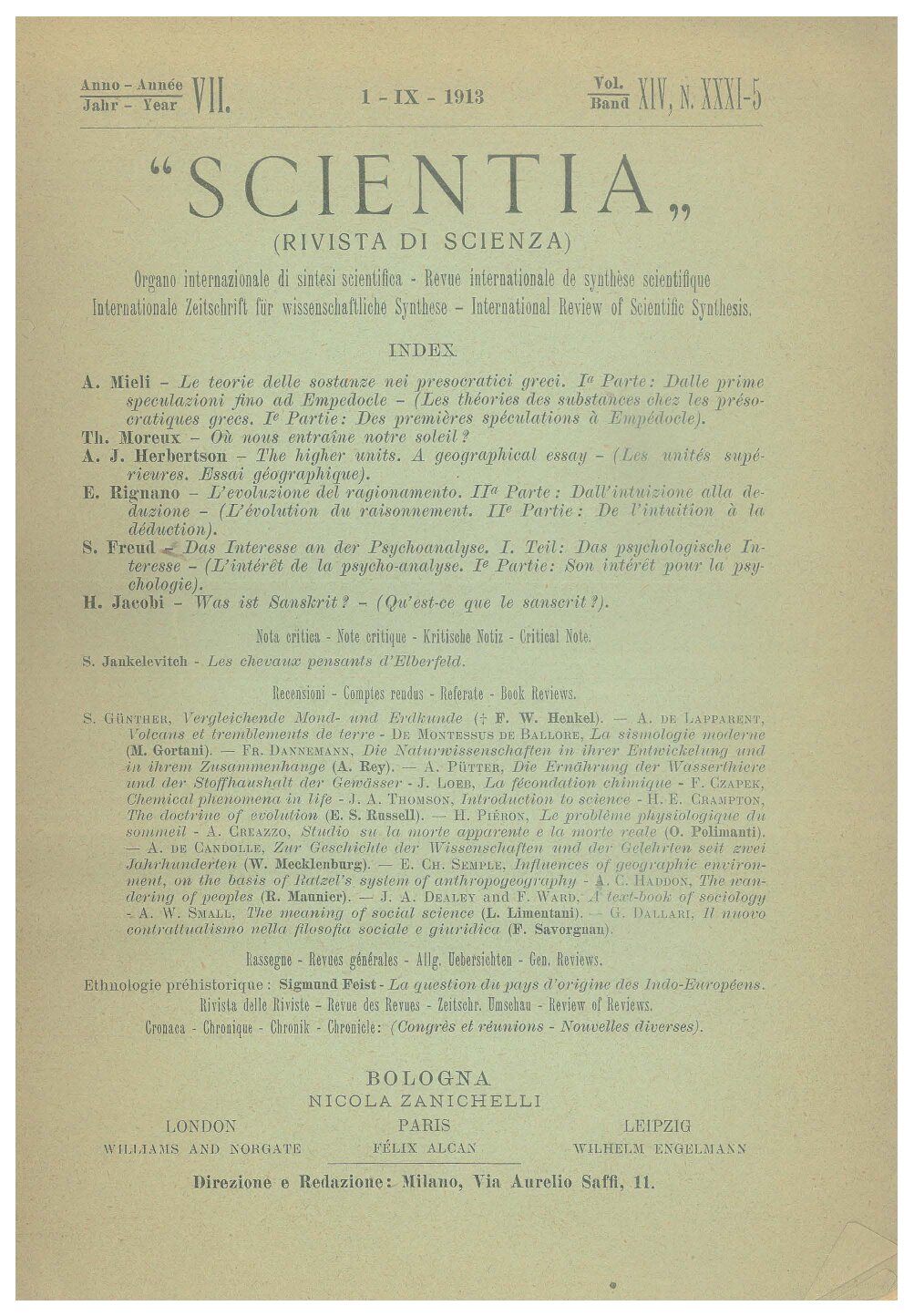 SOSUERTE AUS DER SCIENTIA BAND XIV, JAIR 7. (1913, N. XXXI