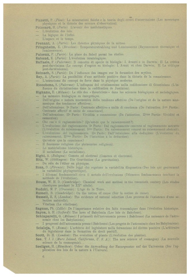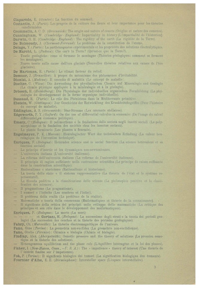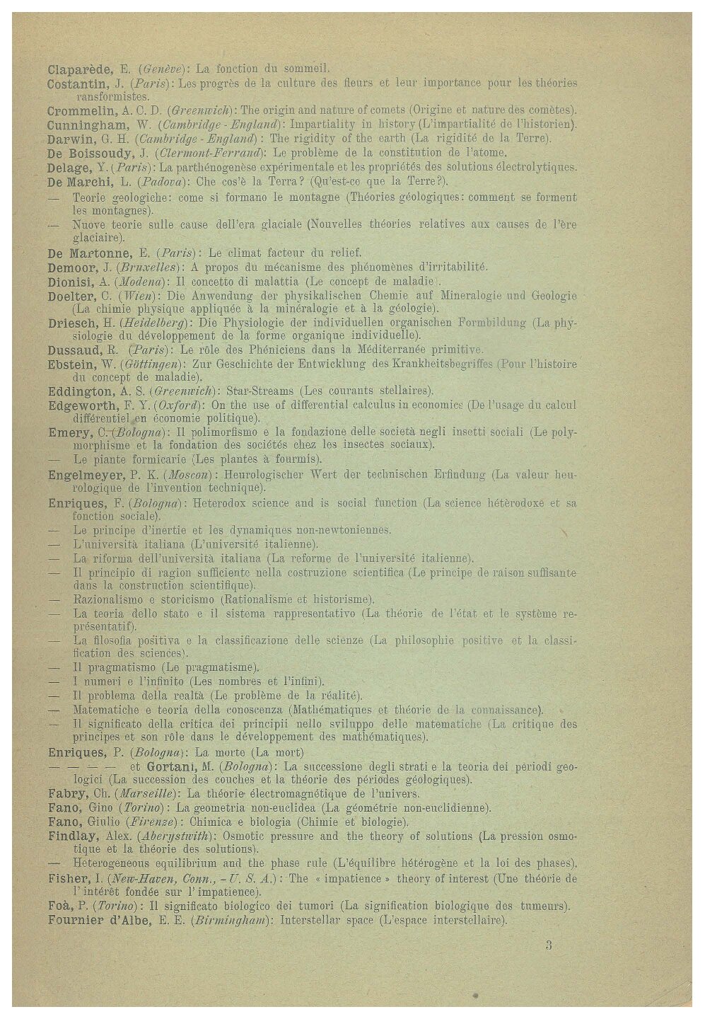 optiques). Caullery, M. (Paris): La méthode et les critères de la morphologie. Celorin, G. (Milano): L'opera di Giovanni Schiaparelli (L'ouve de Giovanni Schiacustin)