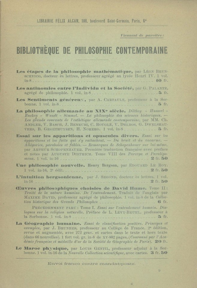 Bohn, G. (Paris): Le psychisme chez les animaux inferieurs. Bonar, J. (Oftara-Canada): Home traile and insign trade (Commerce intérieur et commerce in tarnational) Bonnesen, T. (Kopenhagen): La réforme de l'enseignement des mathematiqnos alémentaires.
