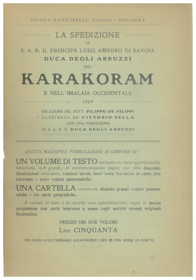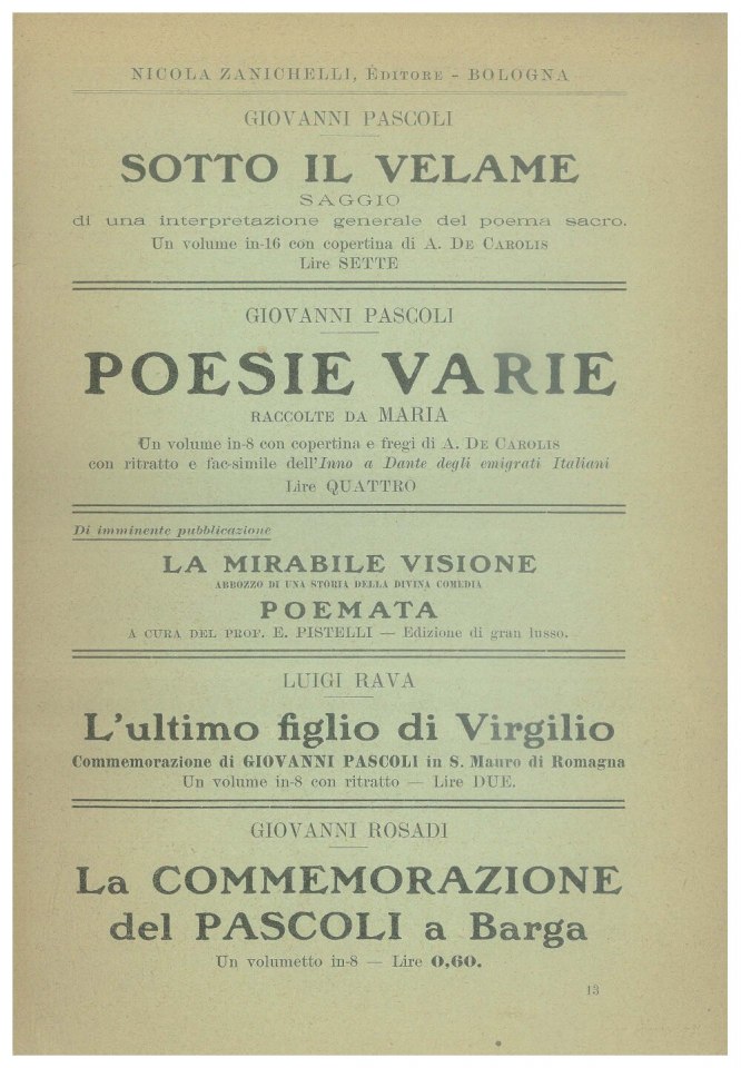 Pour les annonces il fint aladresser au secrétariat général à Milan, Rue Aurelio Sam, 11, ou bien à l'éditeur Nicola Zanichelli à Bologne.