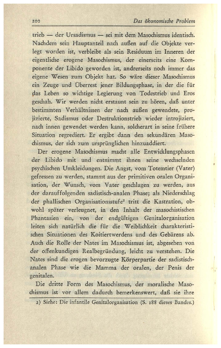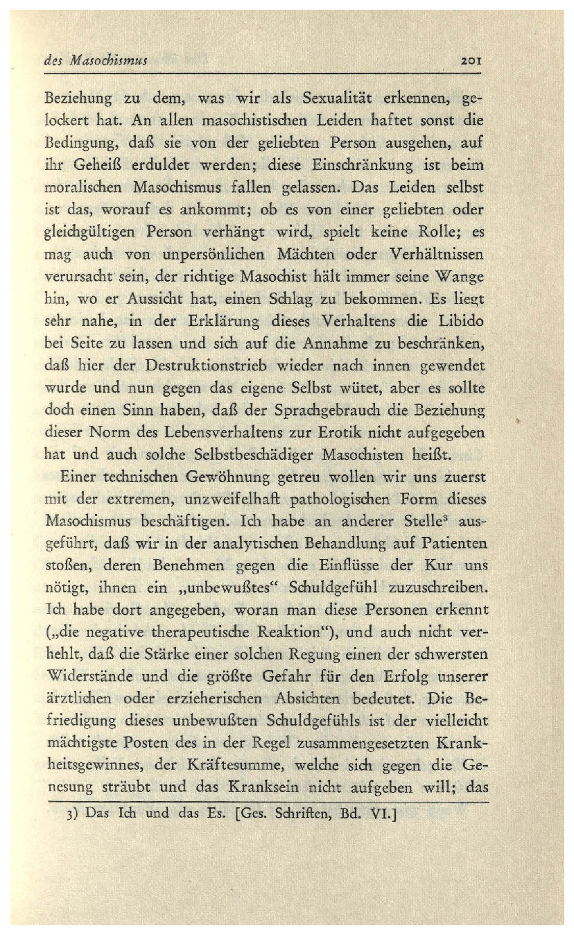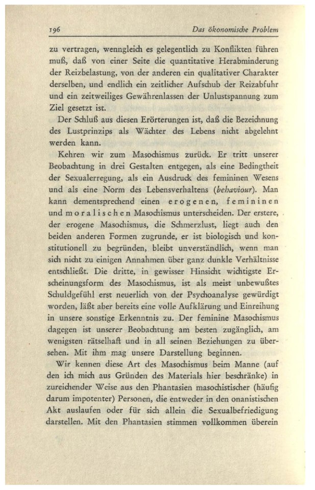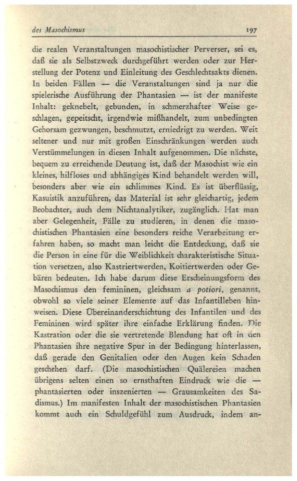 werden kann.Kehren wir zum Masochismus zurück. Er tritt unserer