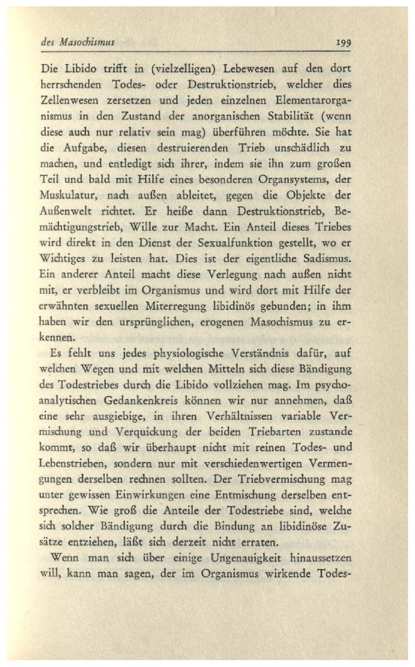 schieden haben, den Todestrieben und den erotischen (libidi-