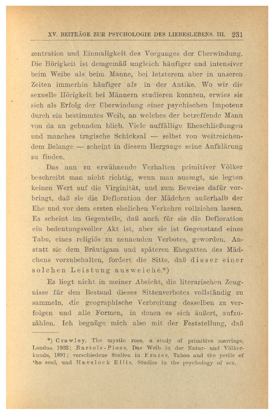 XV. BEITRÄGE ZUR PSYCHOLOGIE DES LIEBESLEBENS, III. 231