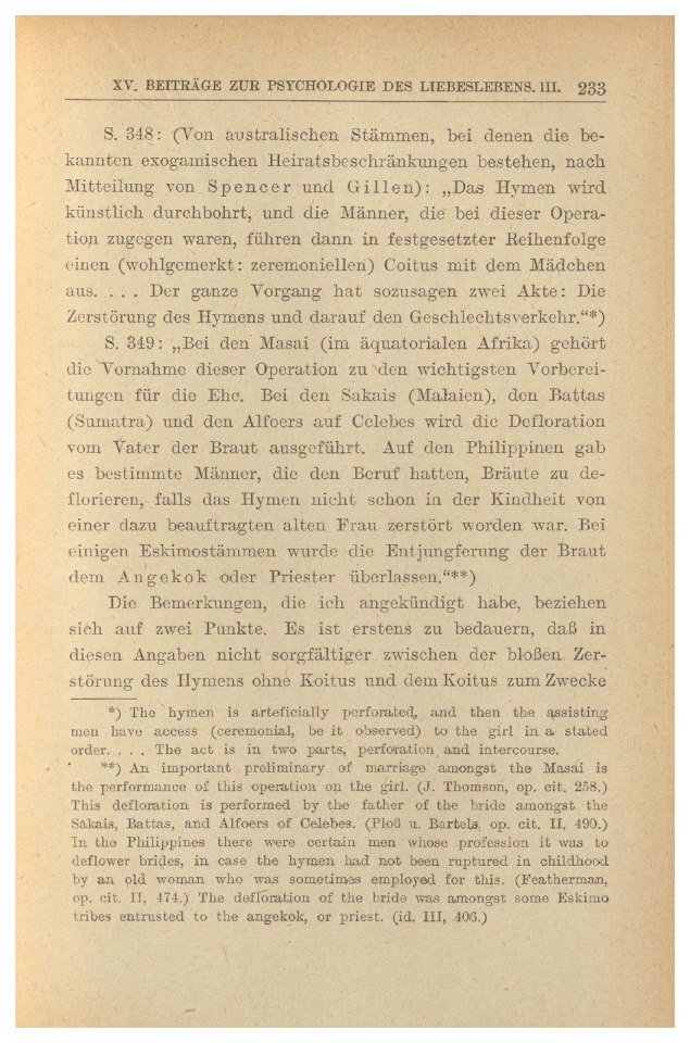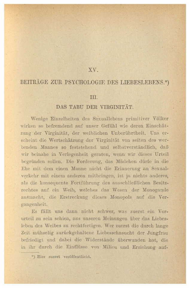 sozusagen am ersten Objekt erschöpft.Das Tabu der Virginitåt ist aber auch sonst in unserem