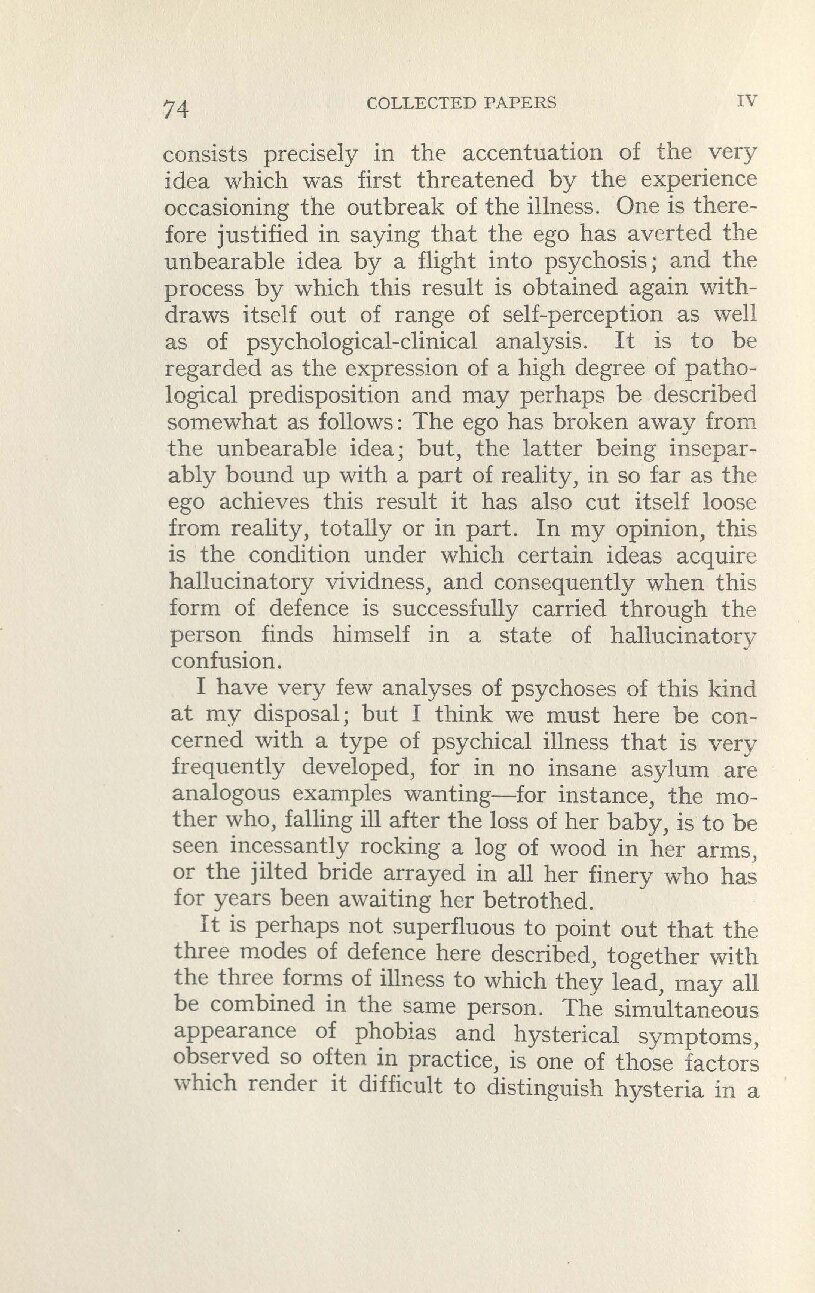 unbearable idea by a flight into psychosis; and the