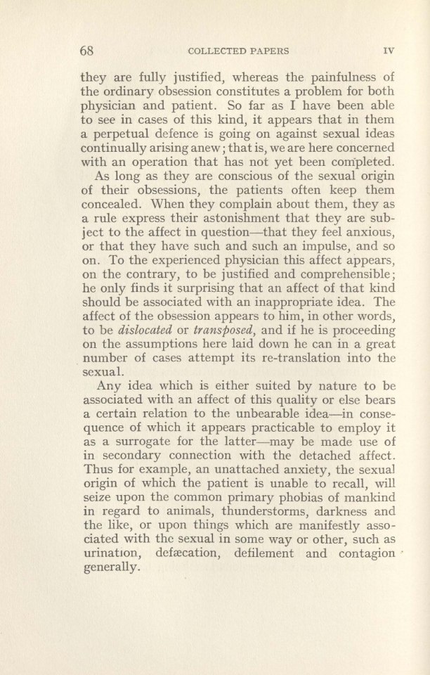 decisive particular—there is here no repressed idea from which theaffect of anxiety would be detached. The anxiety of these phobias