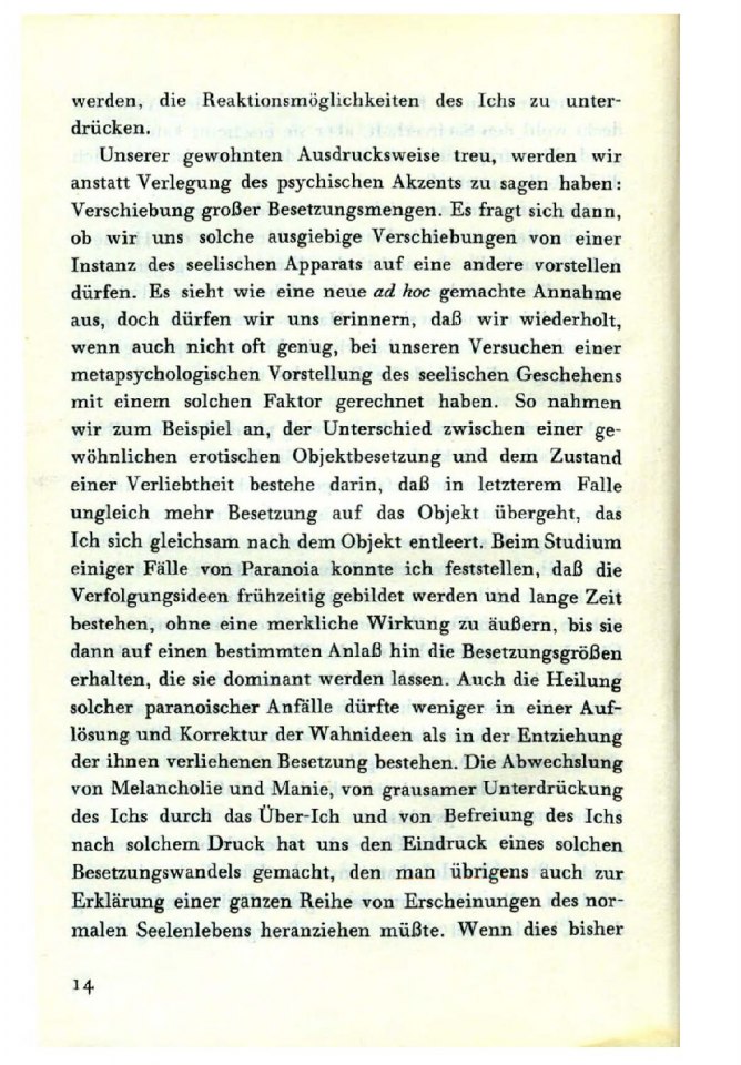 gezogen und auf ihr Über—Ich verlegt habe. Diesem so