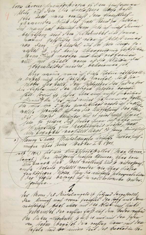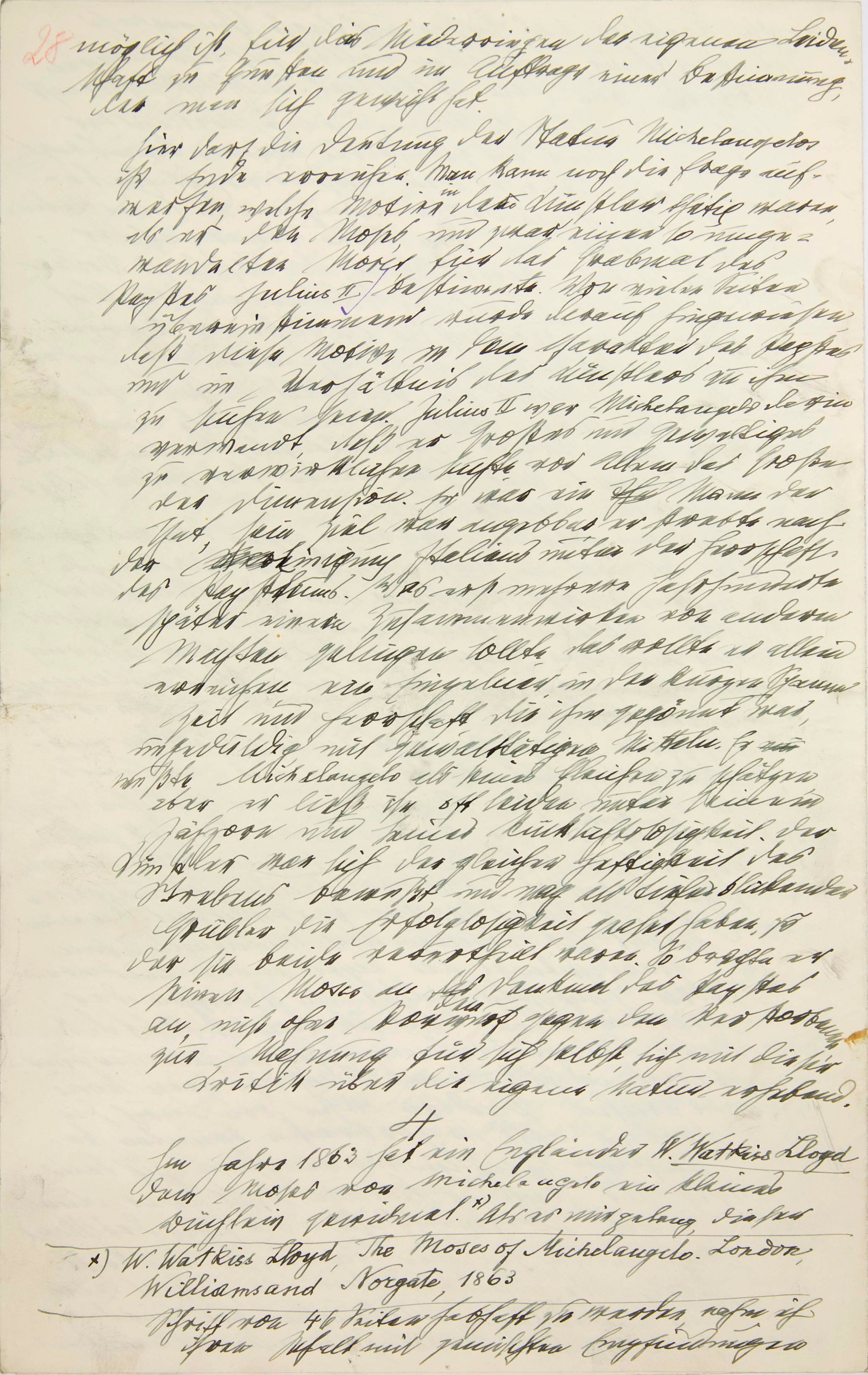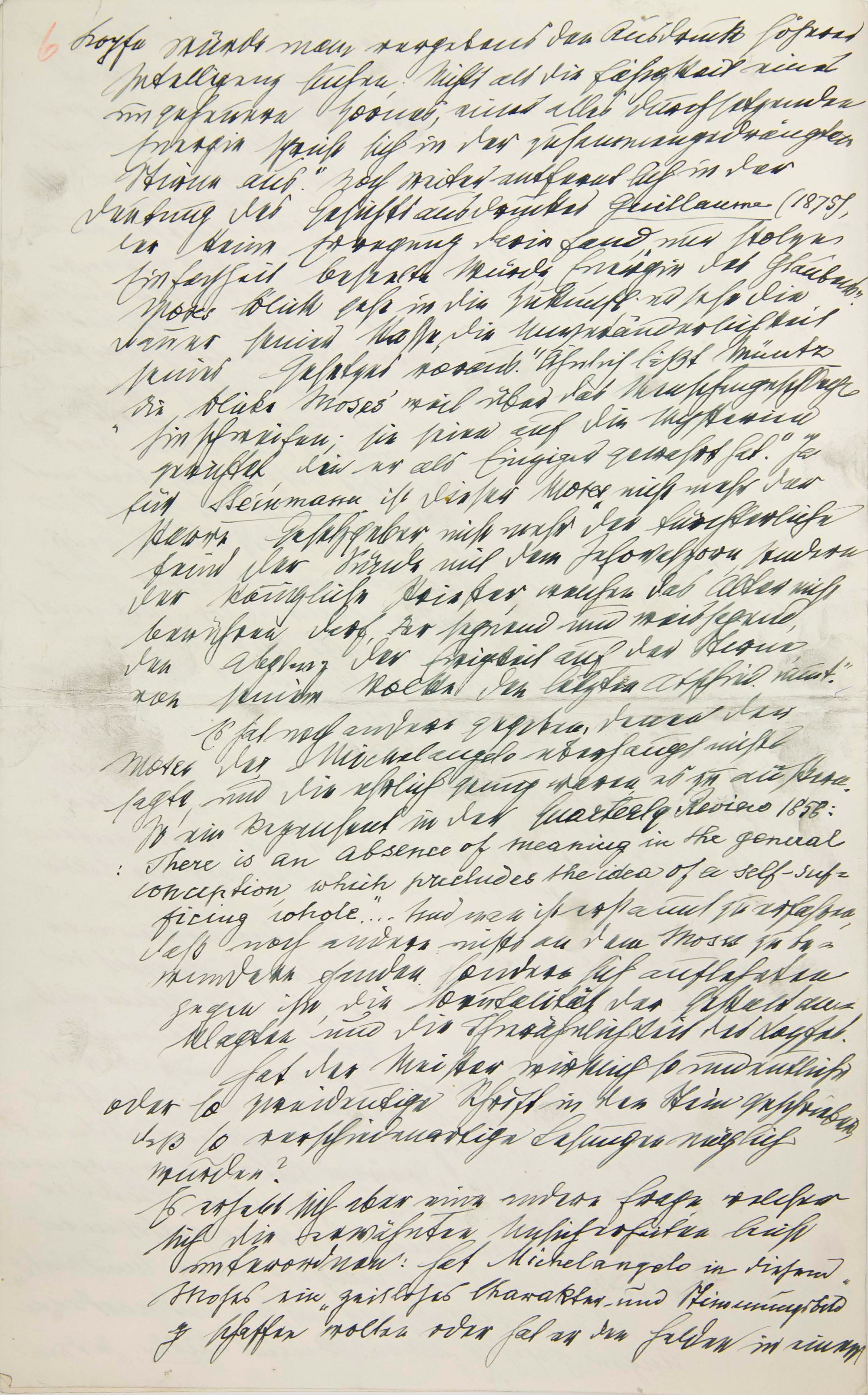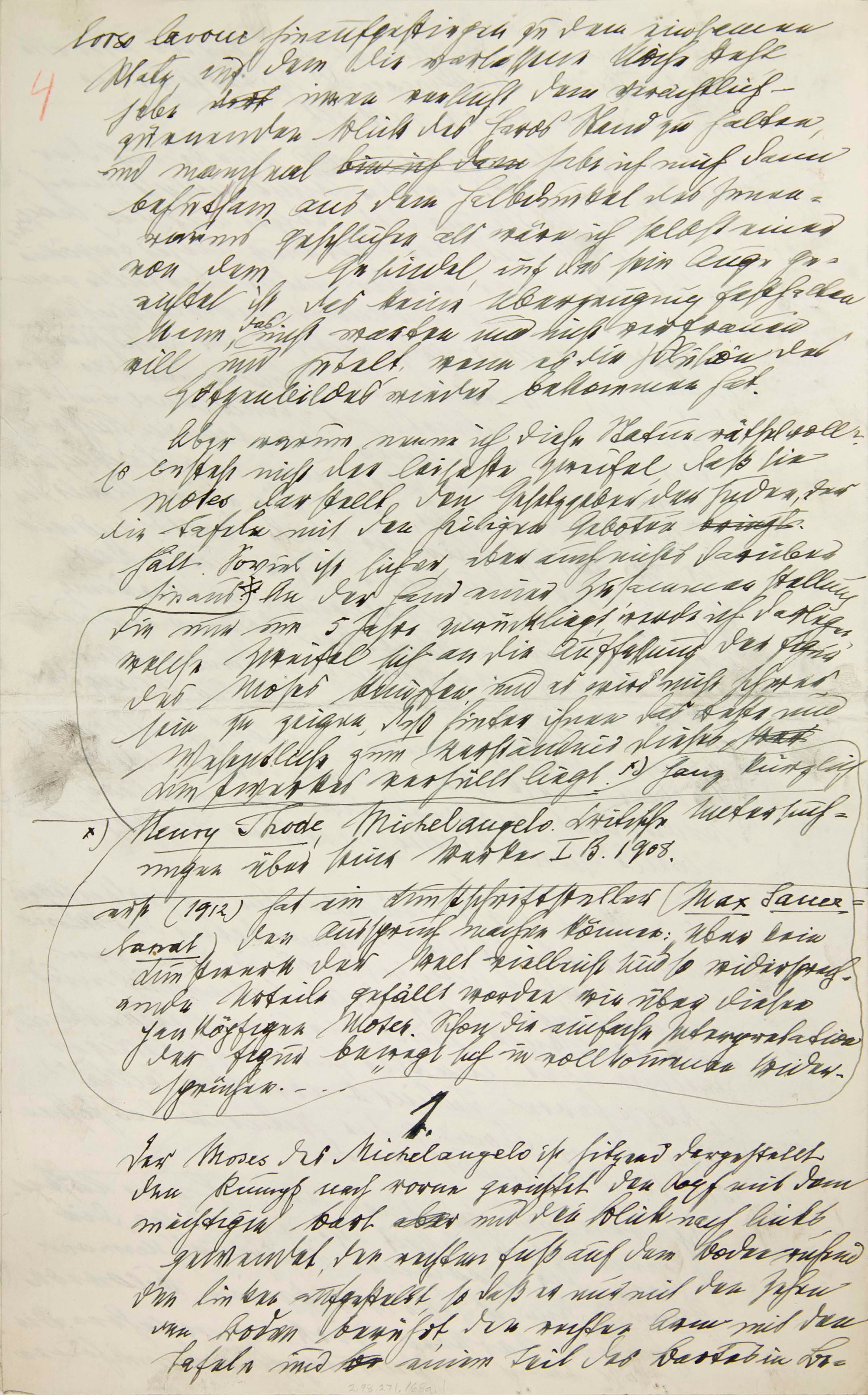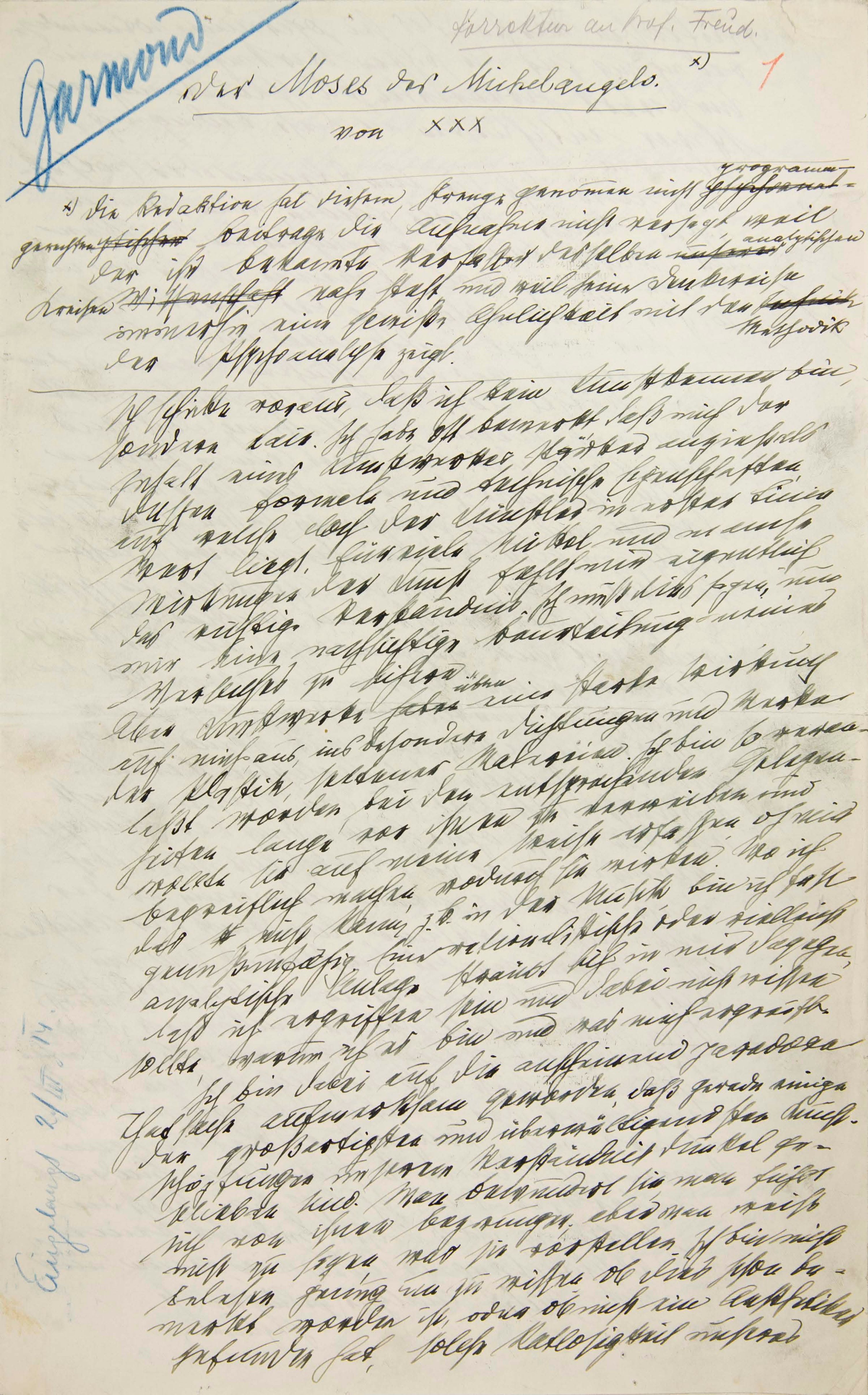Sigmund Freud Papers: Oversize, 1859-1985; Writings; 1914; "Der Moses des Michelangelo" [b], holograph manuscript with ink sketch of Michelangelo's "Moses"