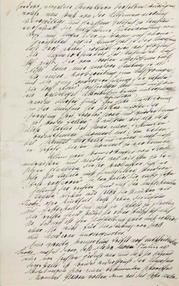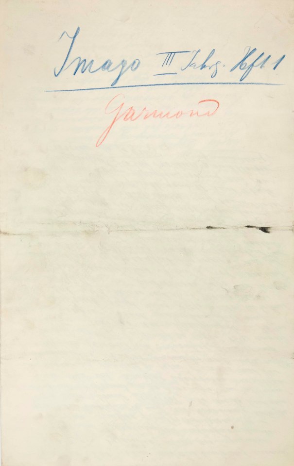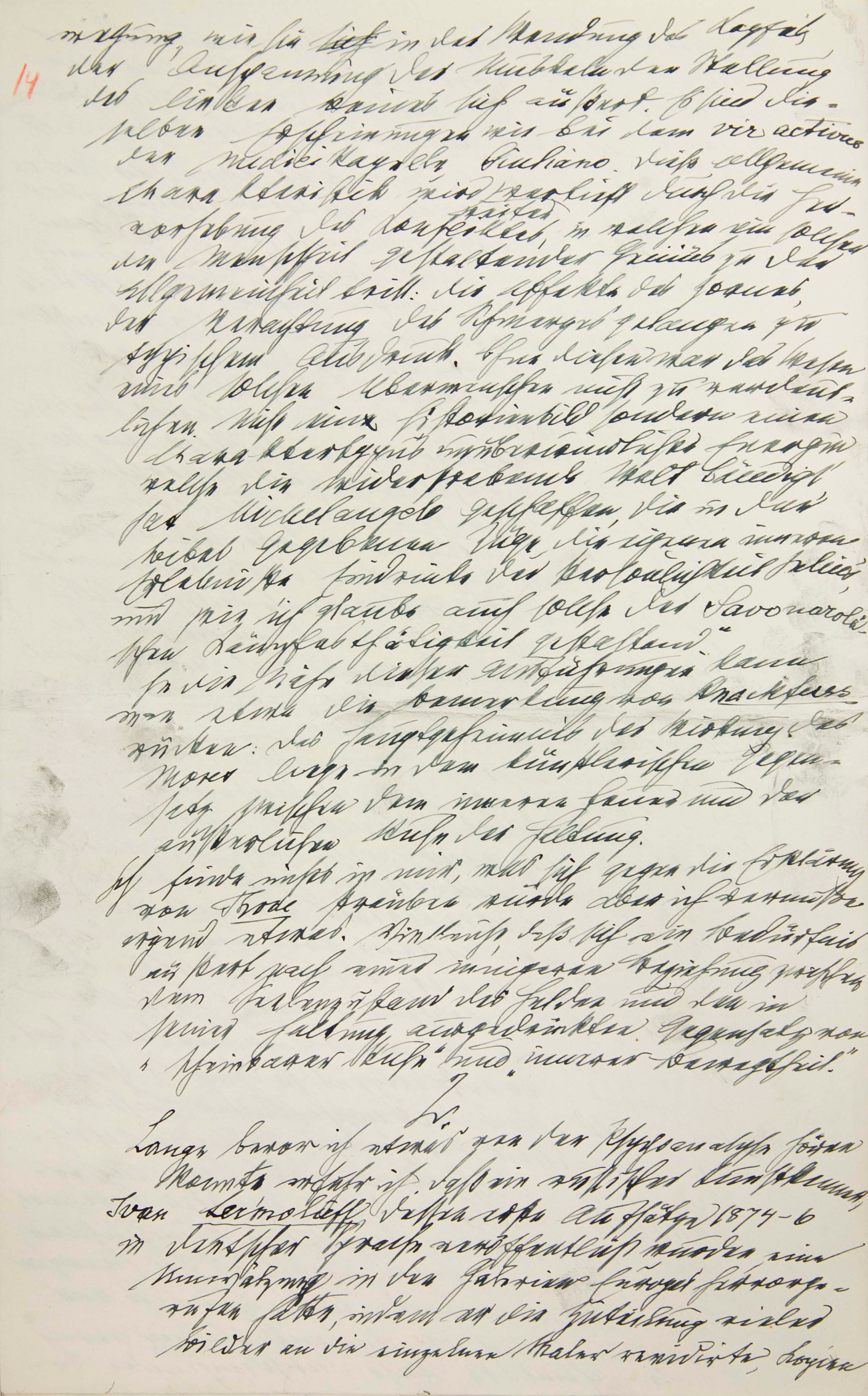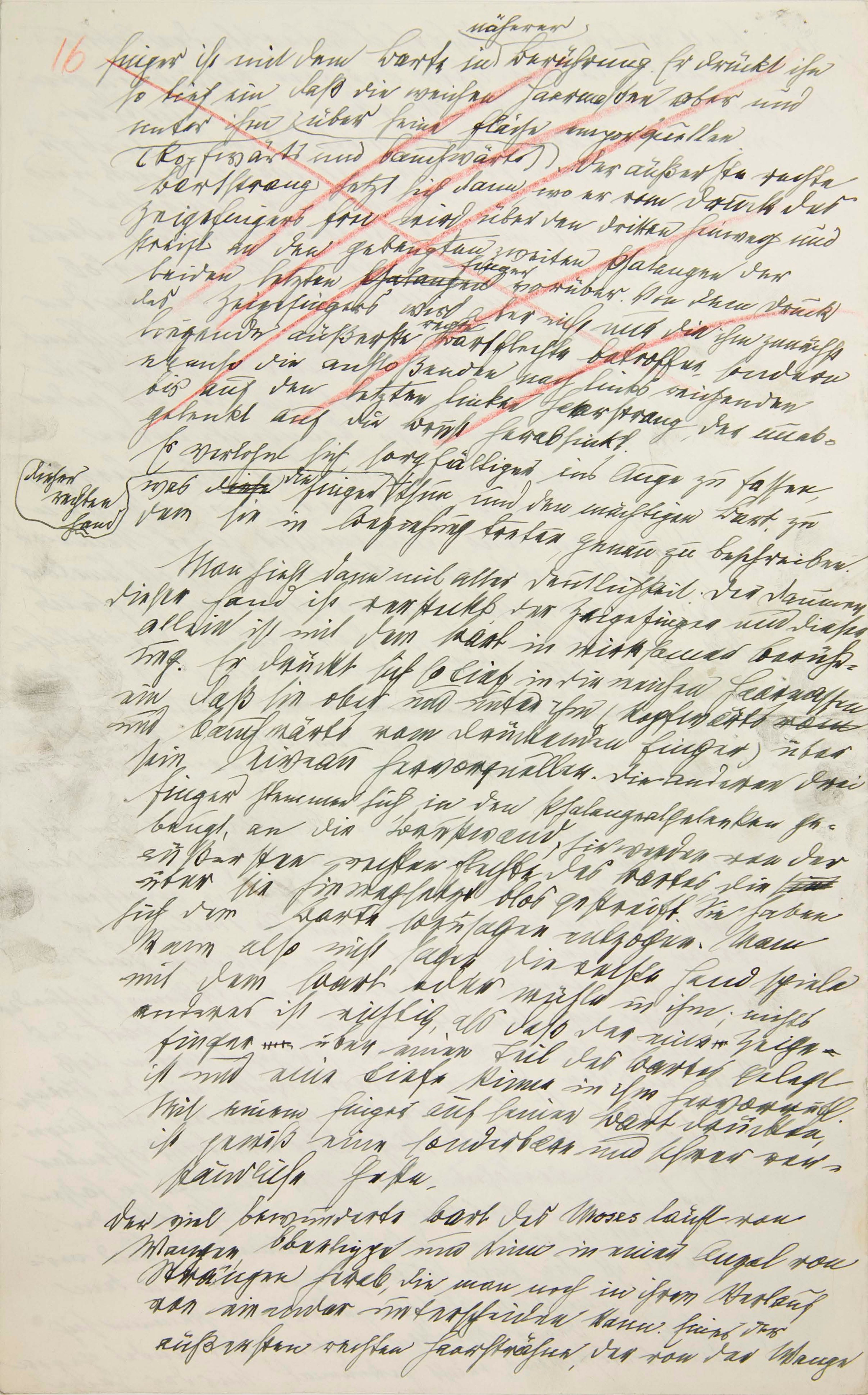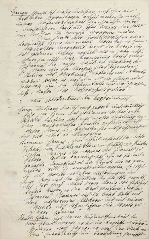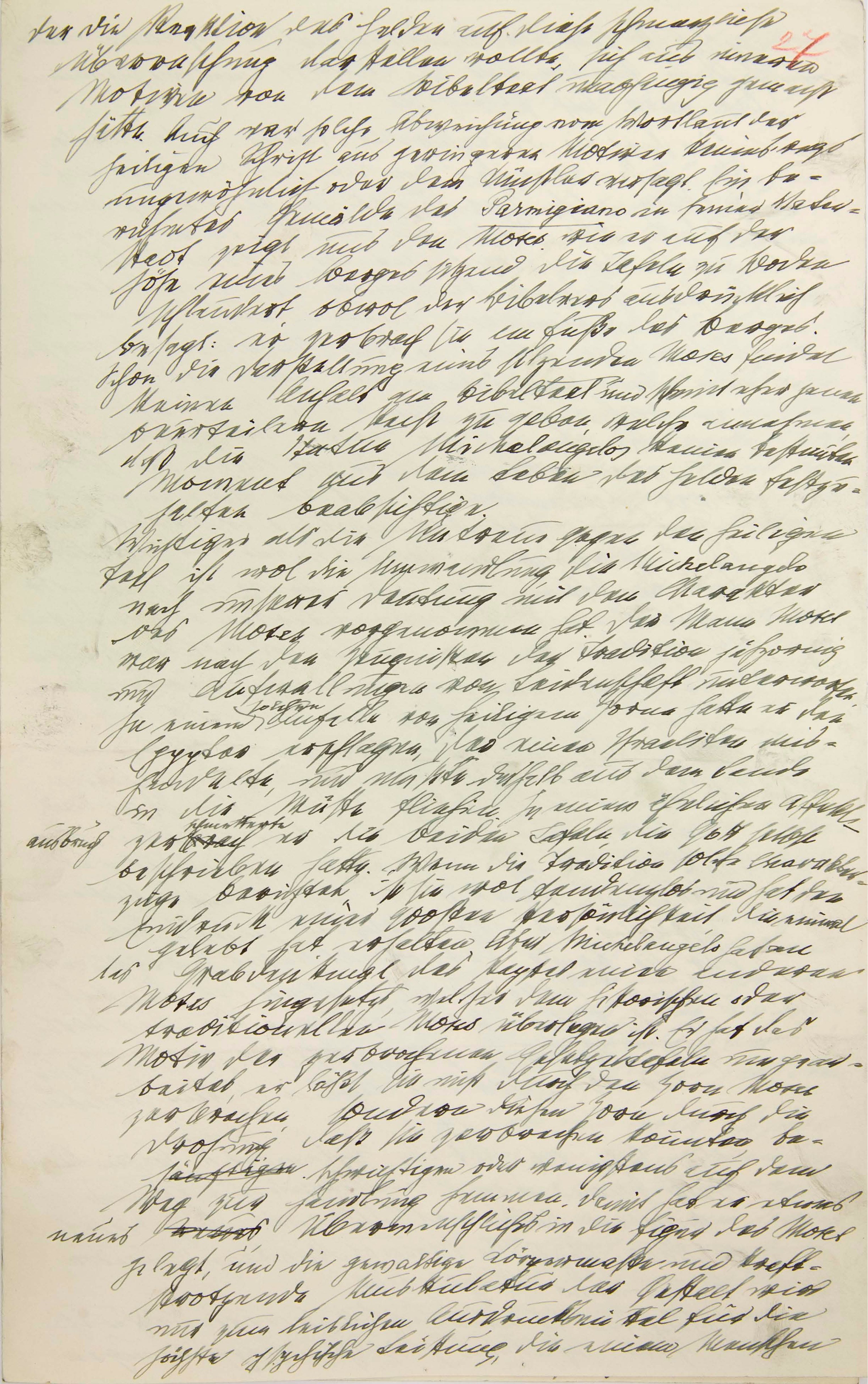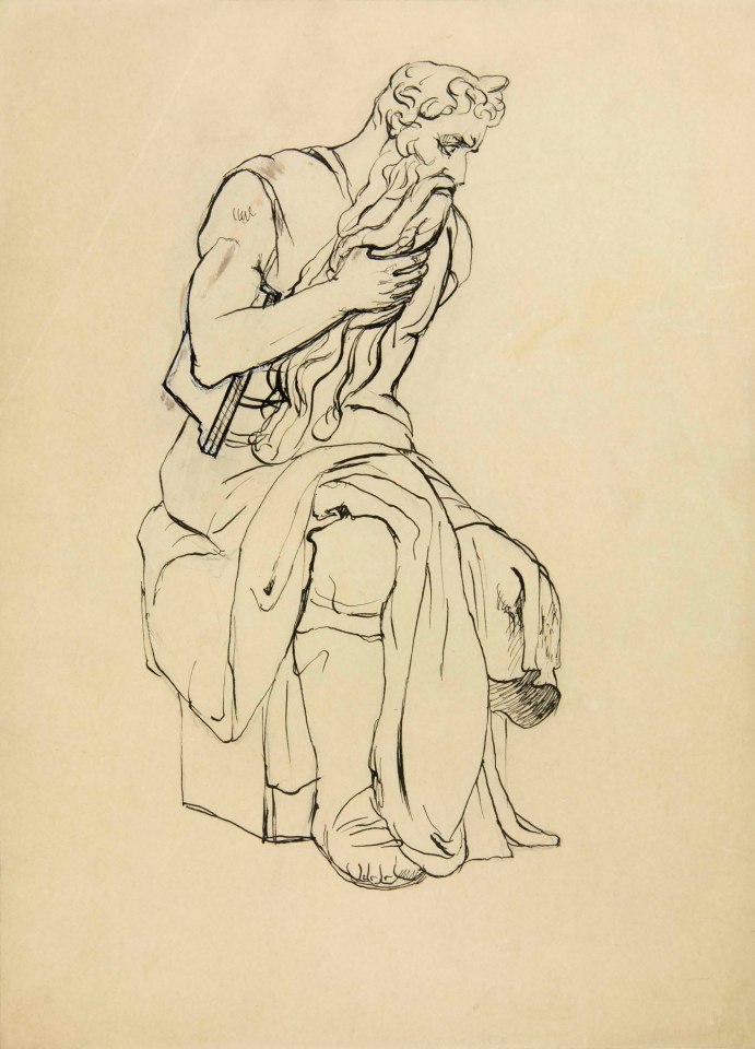 Sigmund Freud Papers: Oversize, 1859-1985; Writings; 1914; "Der Moses des Michelangelo" [b], holograph manuscript with ink sketch of Michelangelo's "Moses"