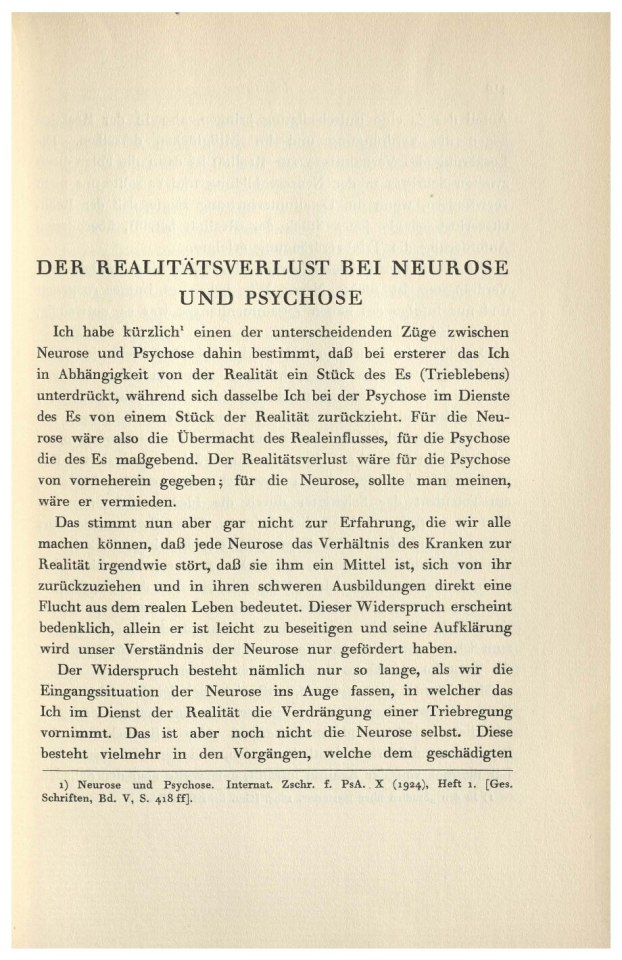 1) Neurose und Psychose. Internat. Zschr. f. PsA. X (1924), Heft 1. [Ges.