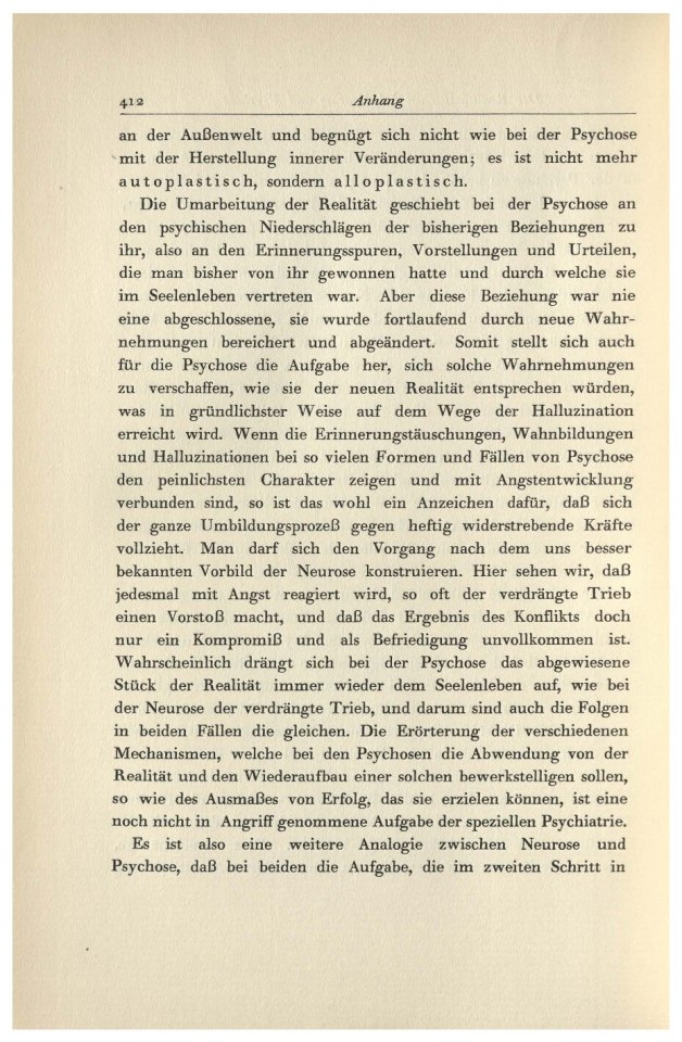 Psychose etwas dem Vorgang bei der Neurose Analoges ereignet,
