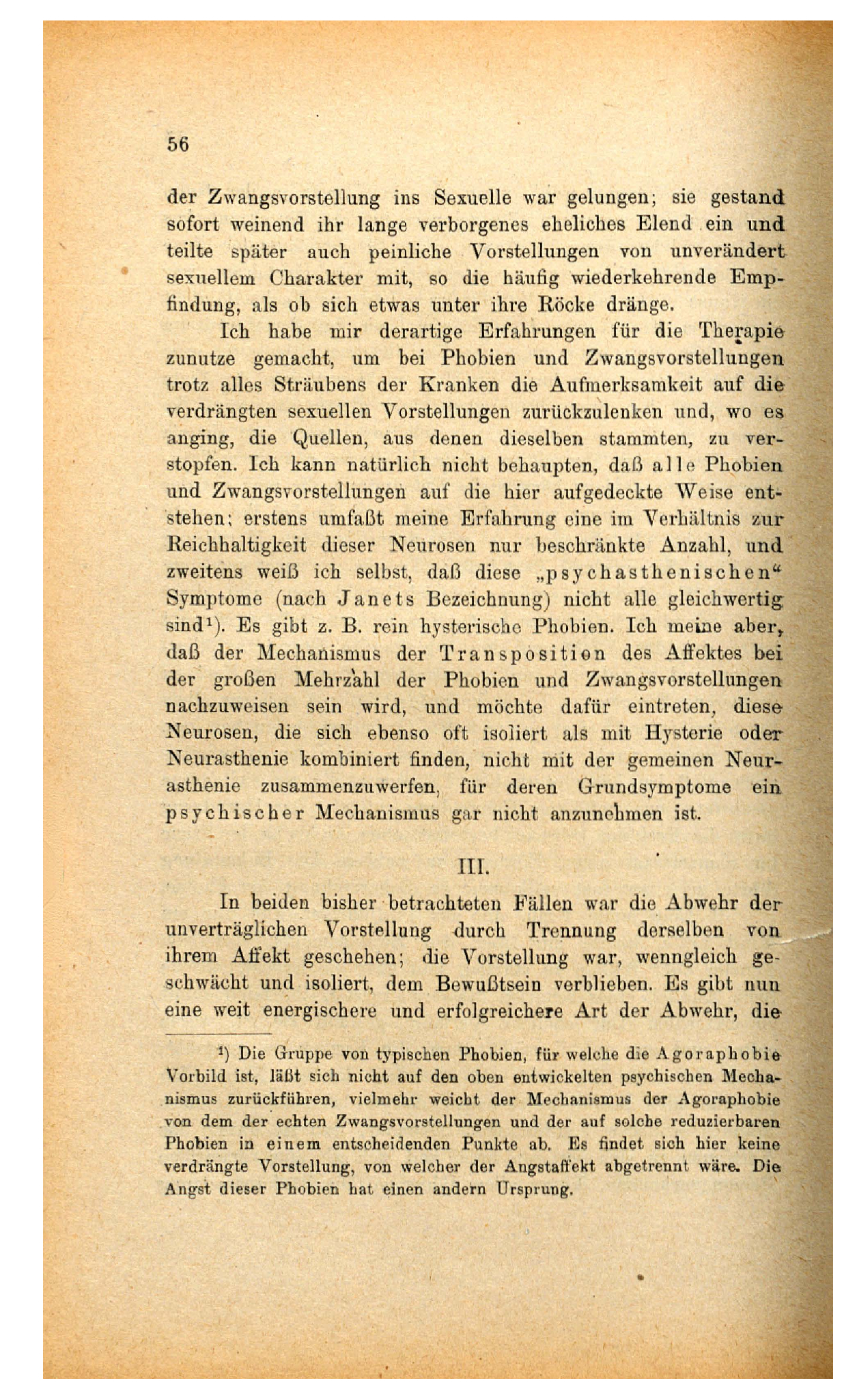 ‘men von Phobien und hysterischen Symptomen, das in praxi. häufig beobachtet wird, gehärt ja mit zu den Momenten,