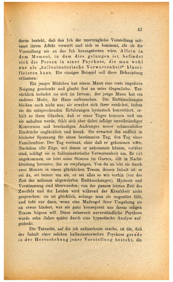 Psychose die unertriigliche Vorstellung abgewehrt hat; der