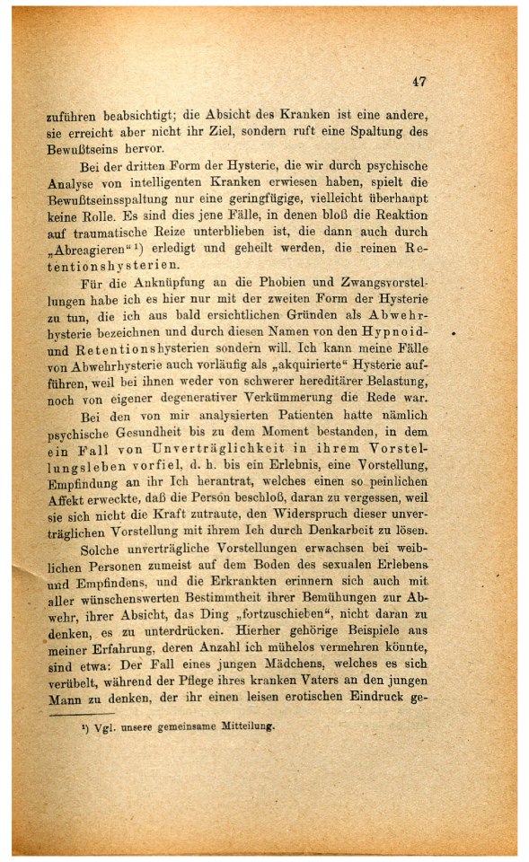 Theorie des „Abreagierens“ (Vorläufige Mitteilung 1893) zu-