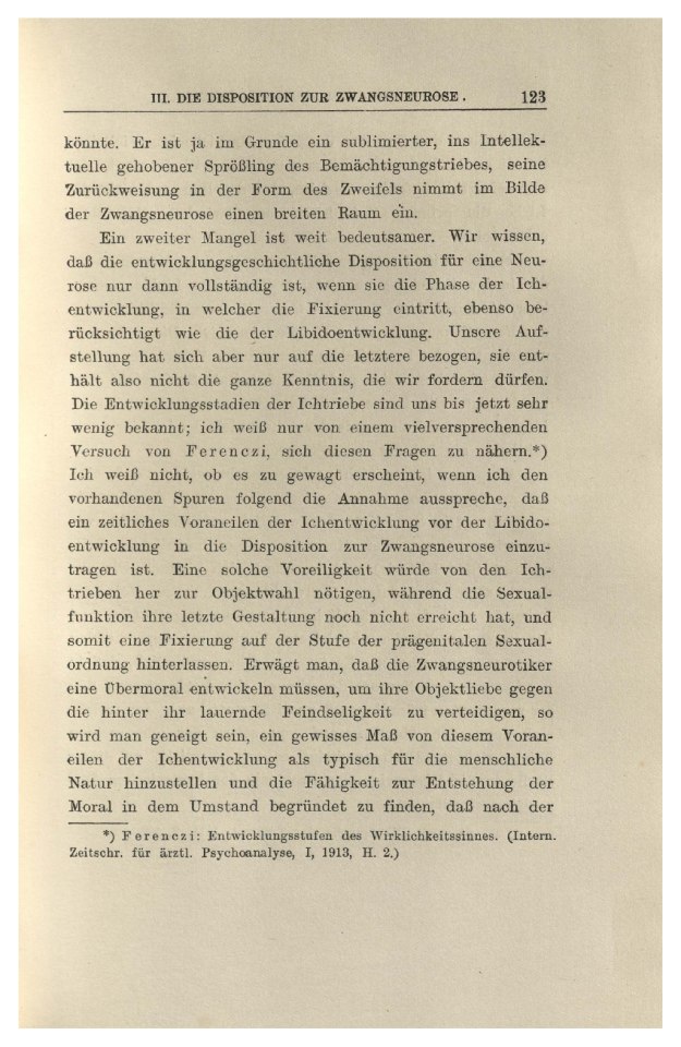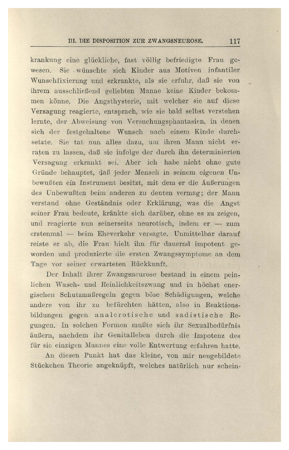 der Zwangsneurose einen breiten Raum ein.Ein zweiter Mangel ist weit bedeutsamer. Wir wissen,