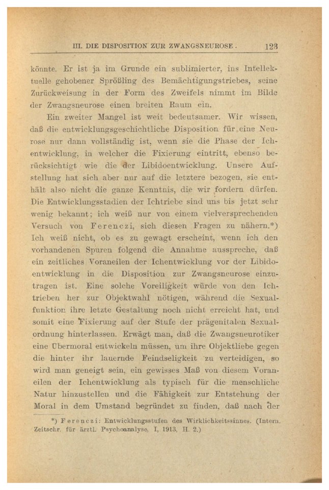 (Intern. Zeitschr. für ärztl. Psychoanalyse, I, 1913.)Freud, Neurosenlehre. IV. ec)