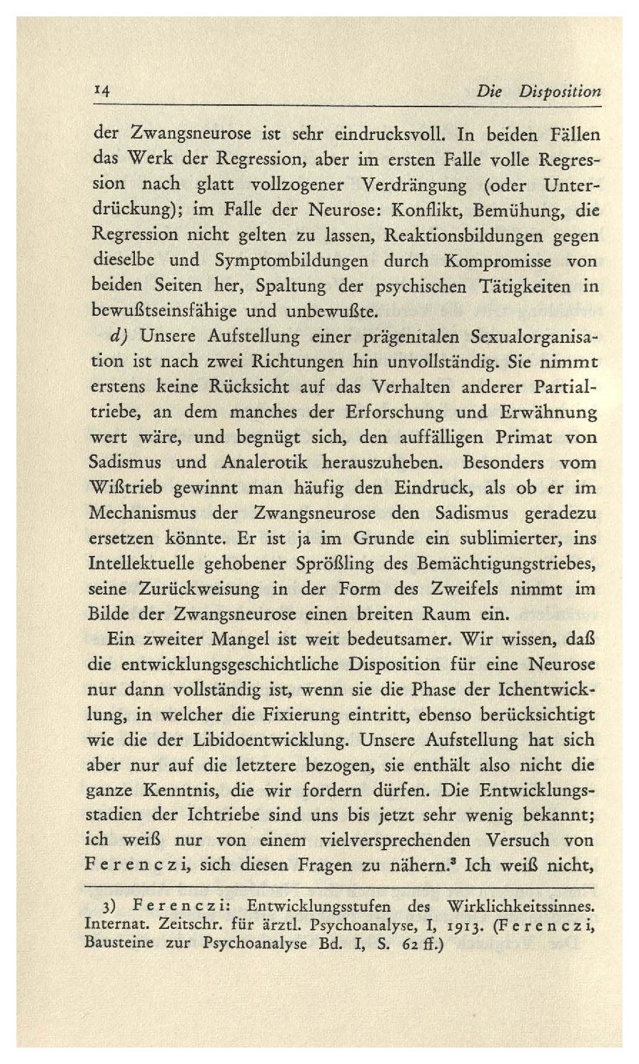 F e r en czi, sich diesen Fragen zu nähern.’ Ich weiß nicht,3) Ferenczi: Entwicklungsstufen des Wirklichkeitssinnes.