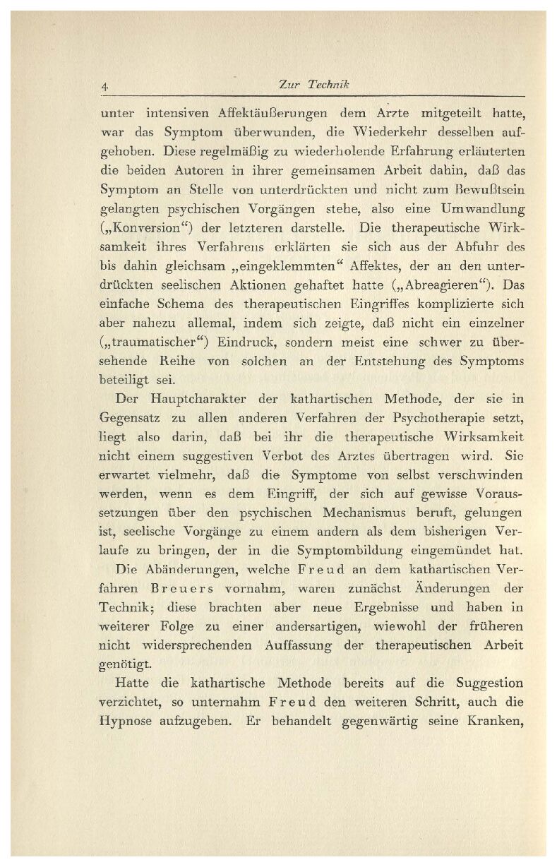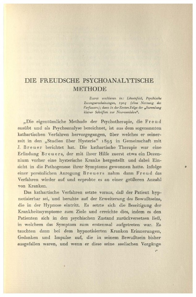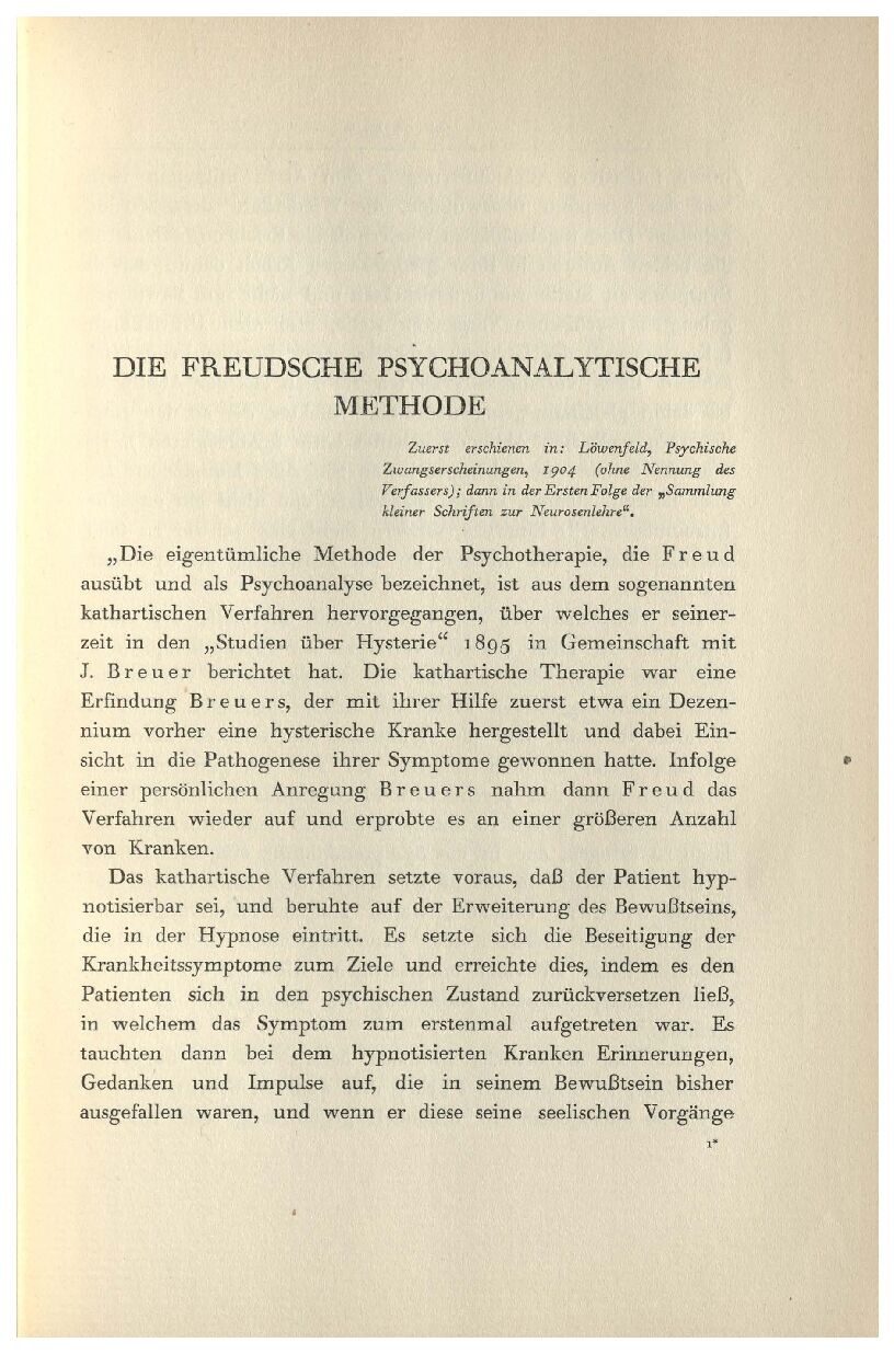 kleiner Schriften zur Neurosenlehre“.„Die eigentümliche Methode der Psychotherapie, die Freud