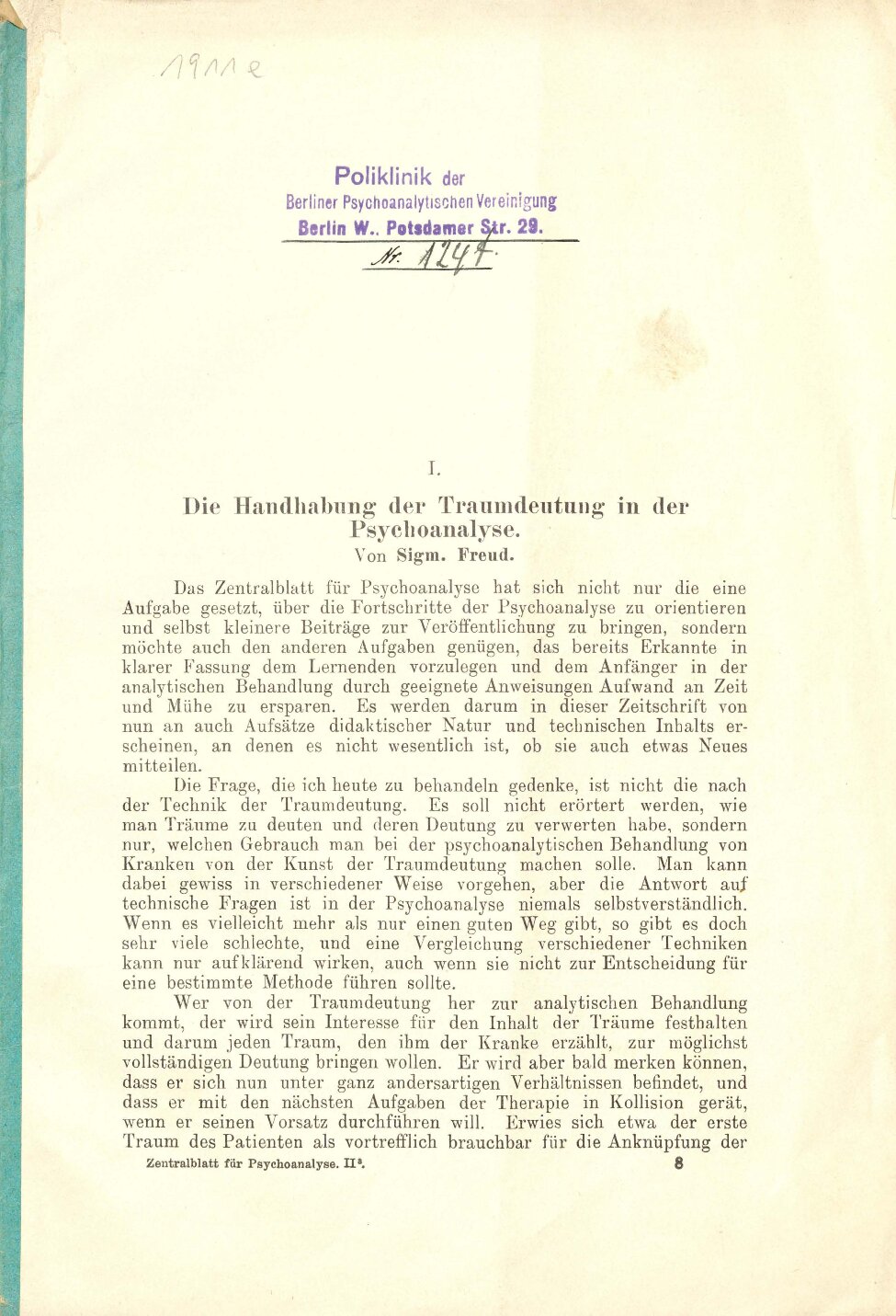 eine bestimmte Methode führen sollte.Wer von der Traumdeutung her zur analytischen Behandlung